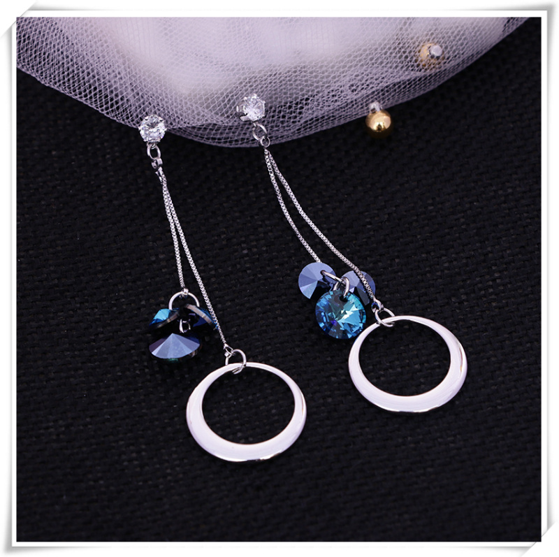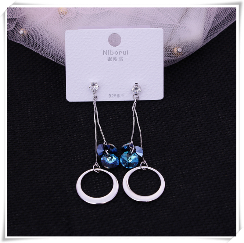 天然水晶长款耳环气质耳坠女银针耳钉新款网红耳饰