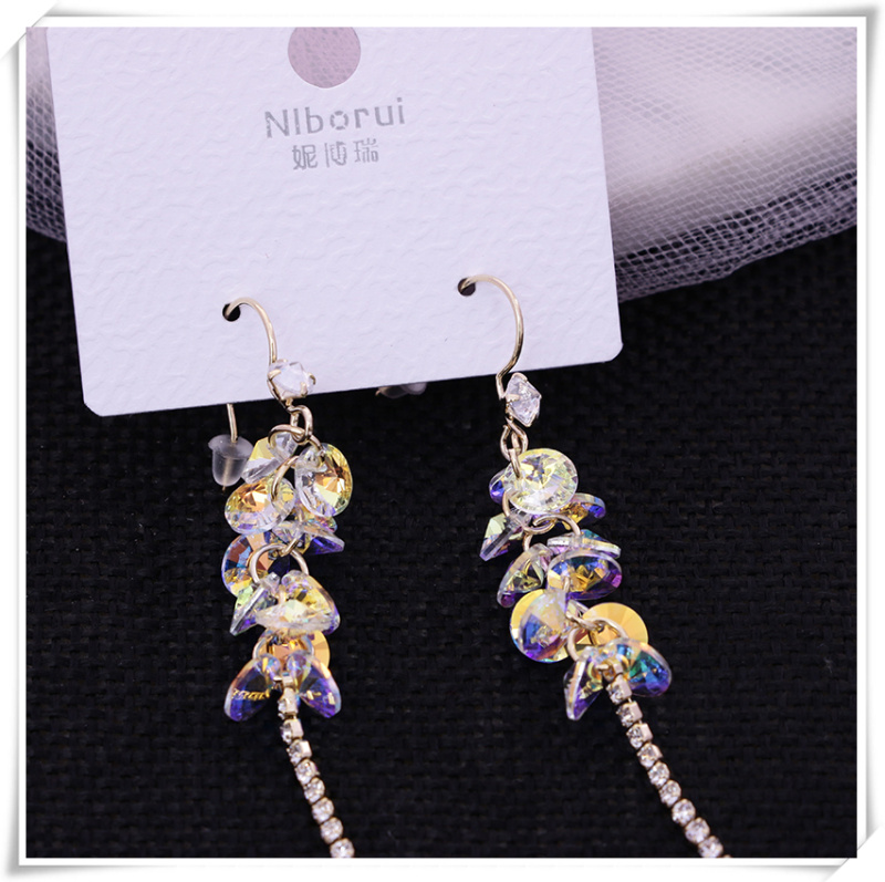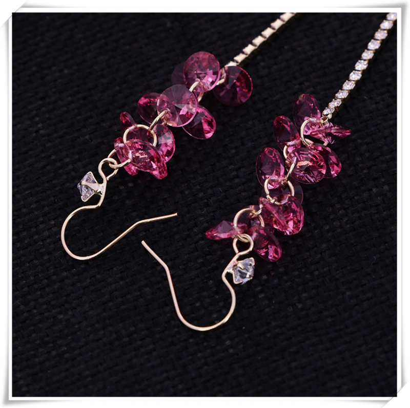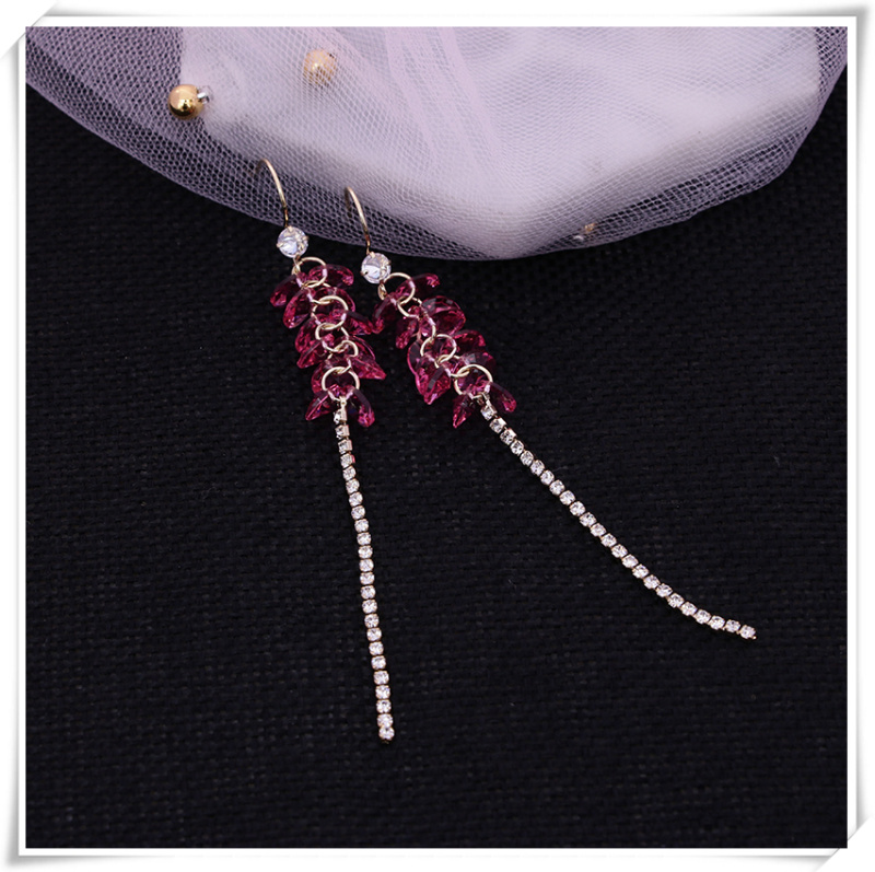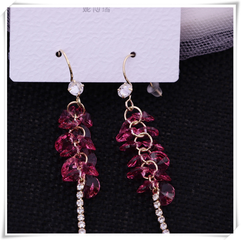 原创设计草莓晶葡萄串流苏长款气质耳环天然水晶耳环