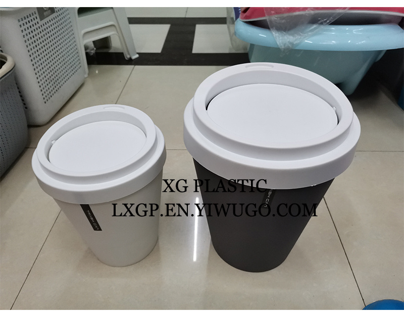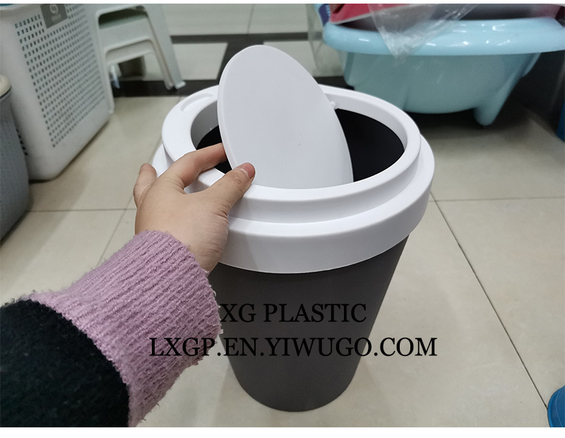 摇盖垃圾桶办公室塑料垃圾筒圆形创意纸篓卫生桶客厅垃圾桶带盖