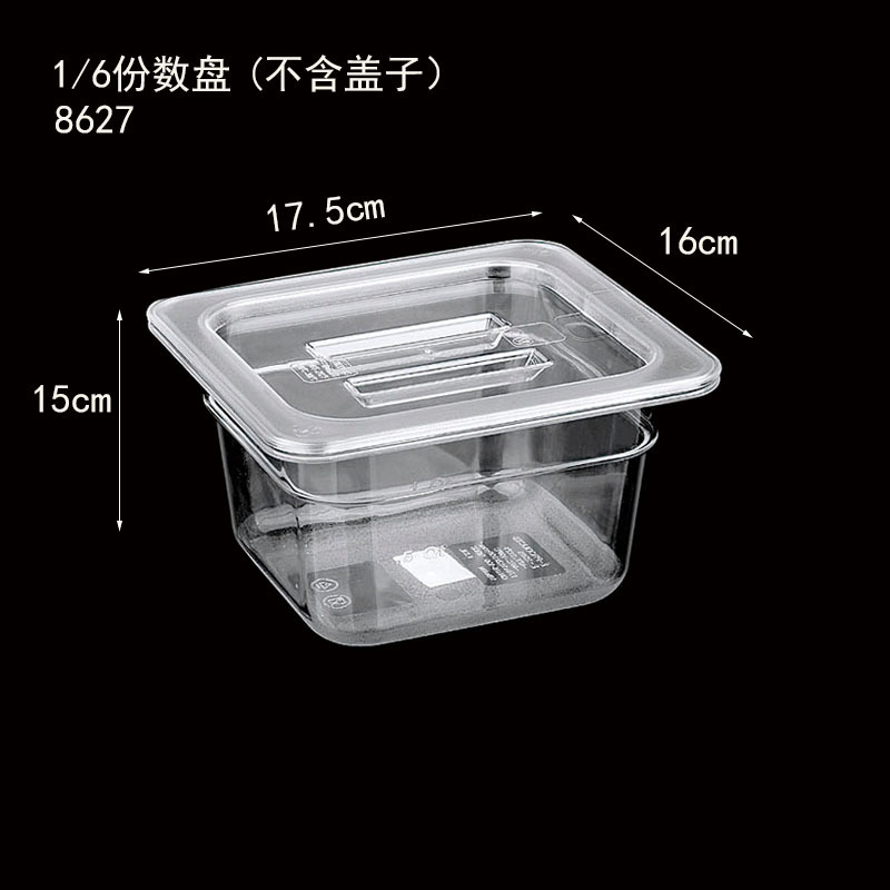 厂价直销1/6透明PC树脂份数盆 塑料份数盘产品有SGS NSF出口认证