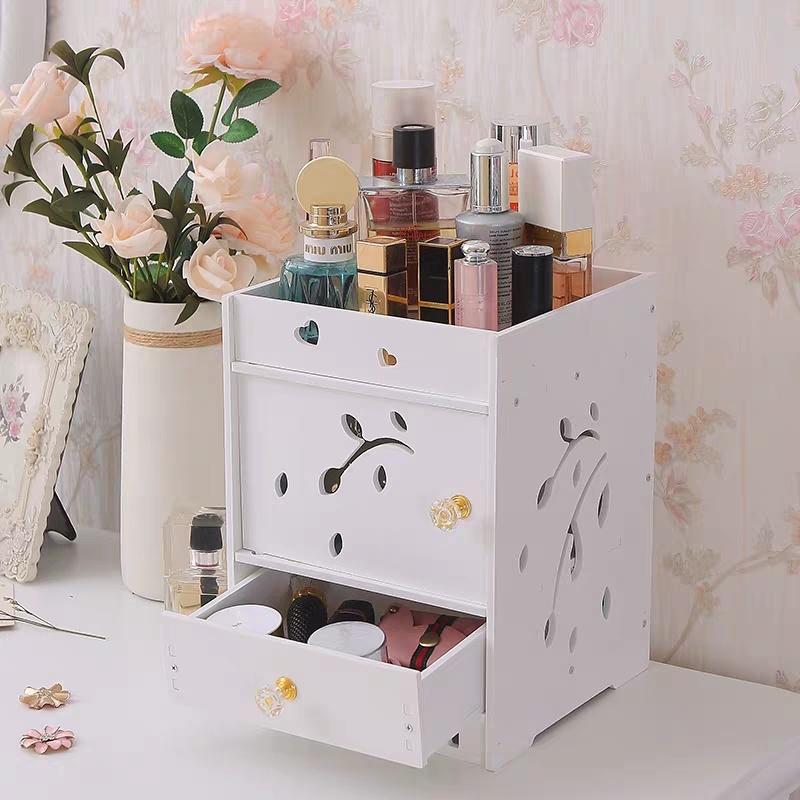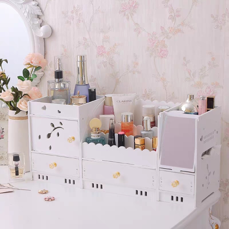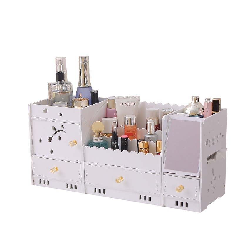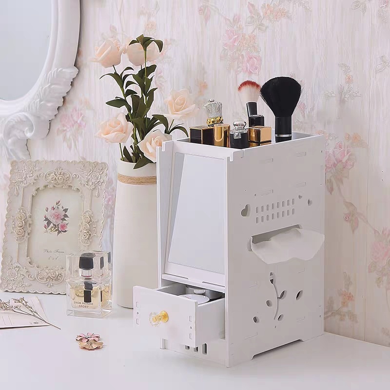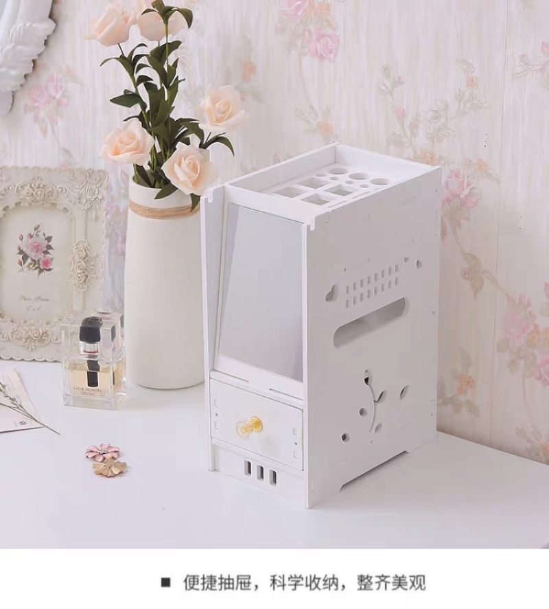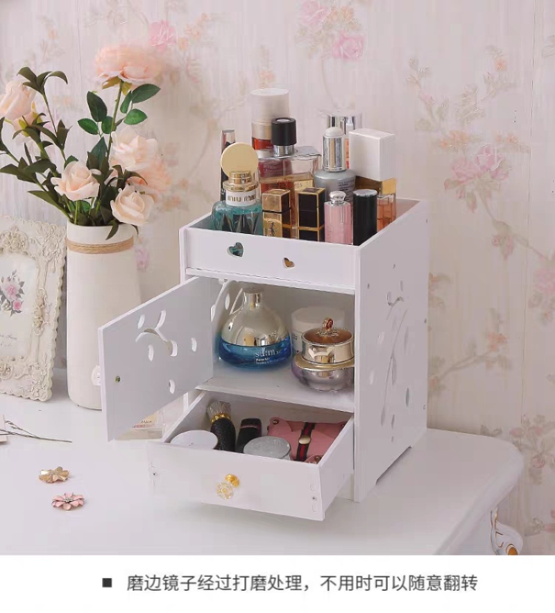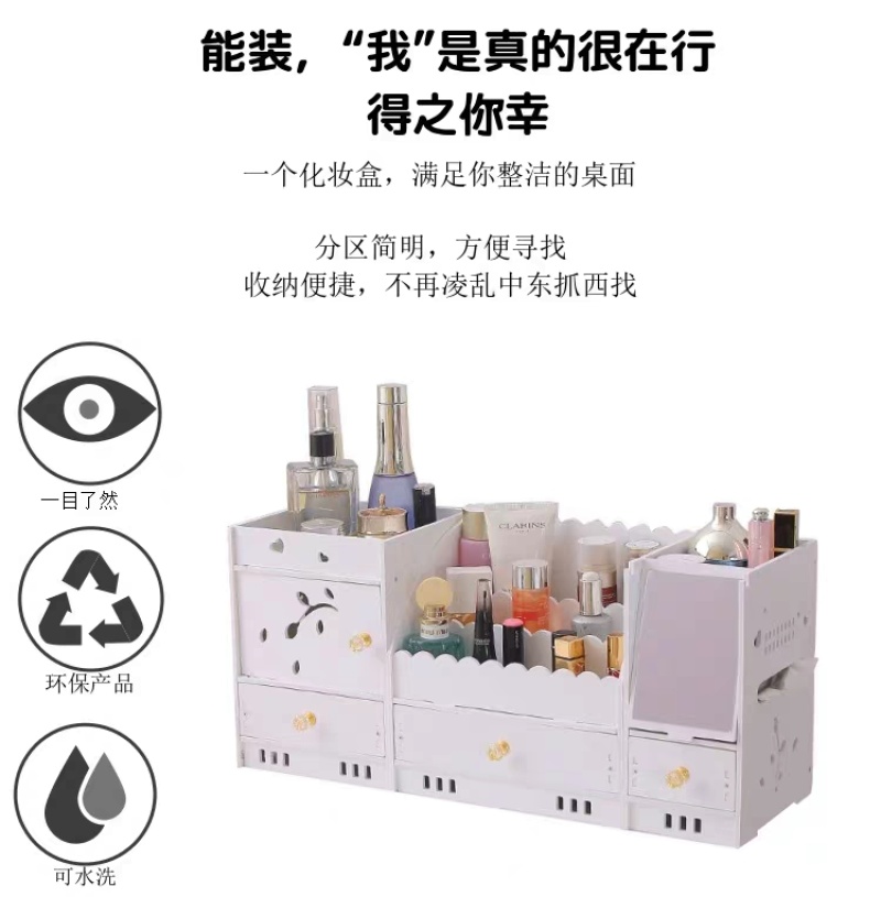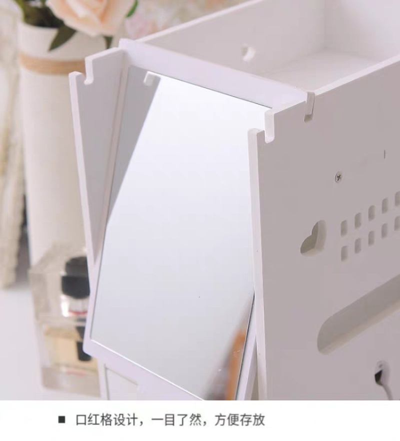 迷你化妆品收纳盒桌面抽屉式储蓄盒梳妆台化妆盒带镜子ZW2699