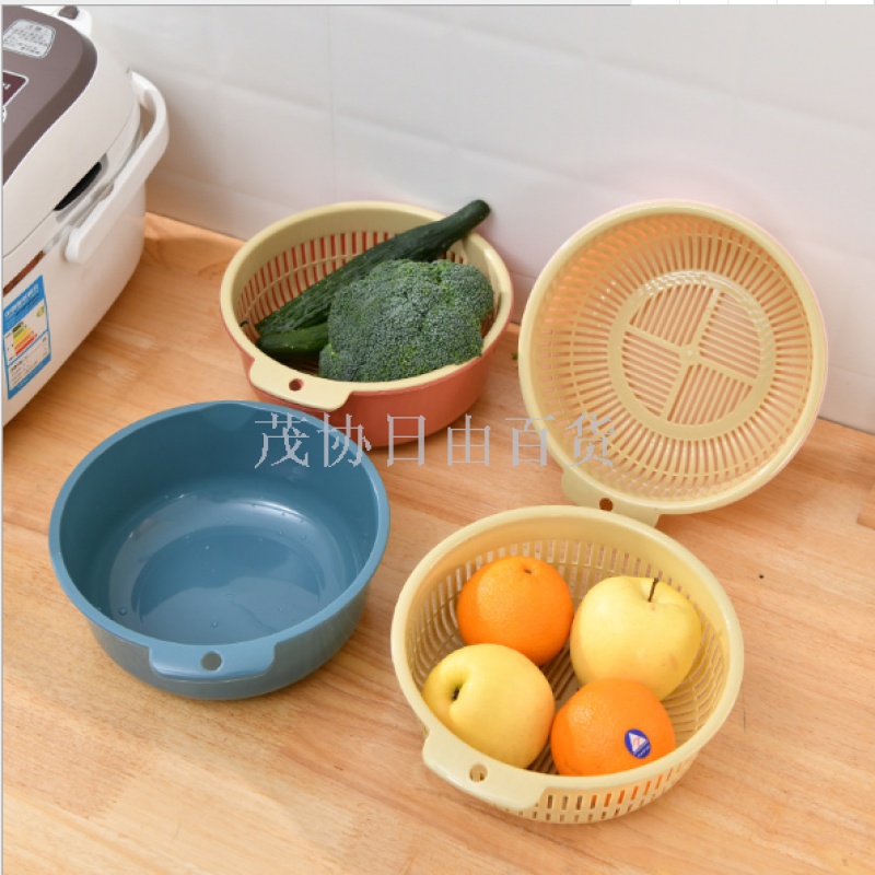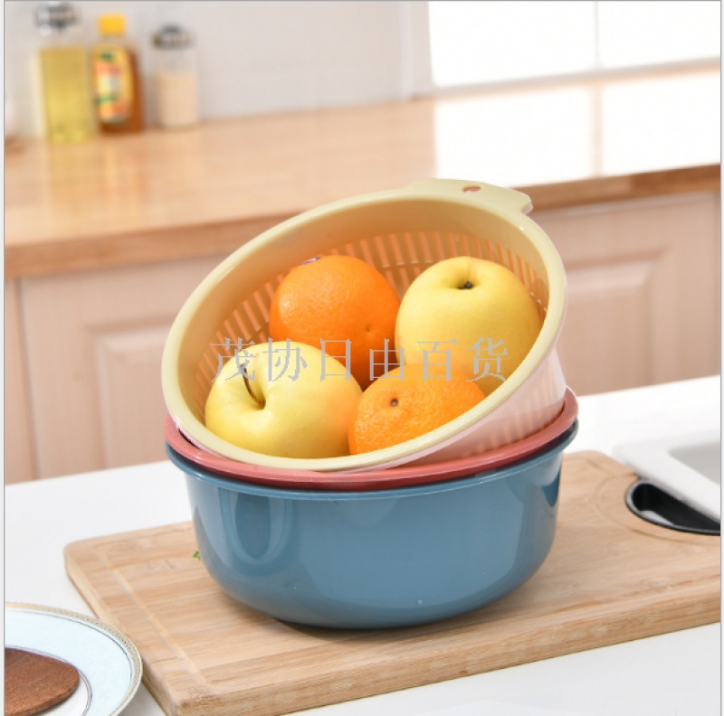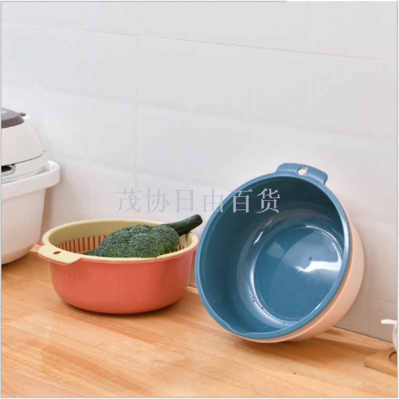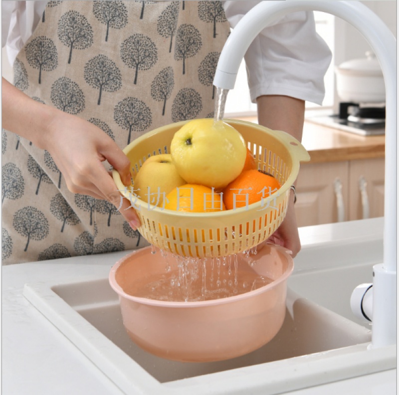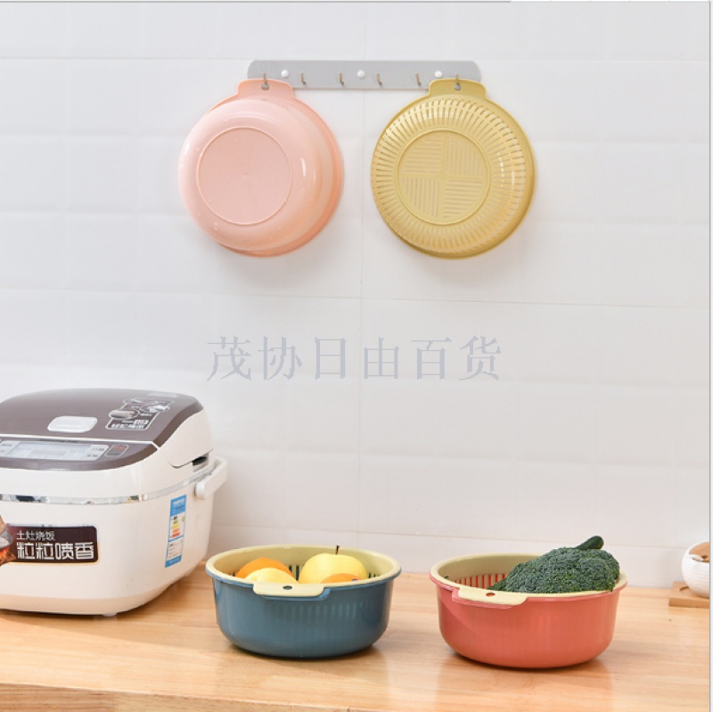 宜悦可挂简约双色沥水篮双层多功能收纳篮塑料淘米厨房洗菜篮套装