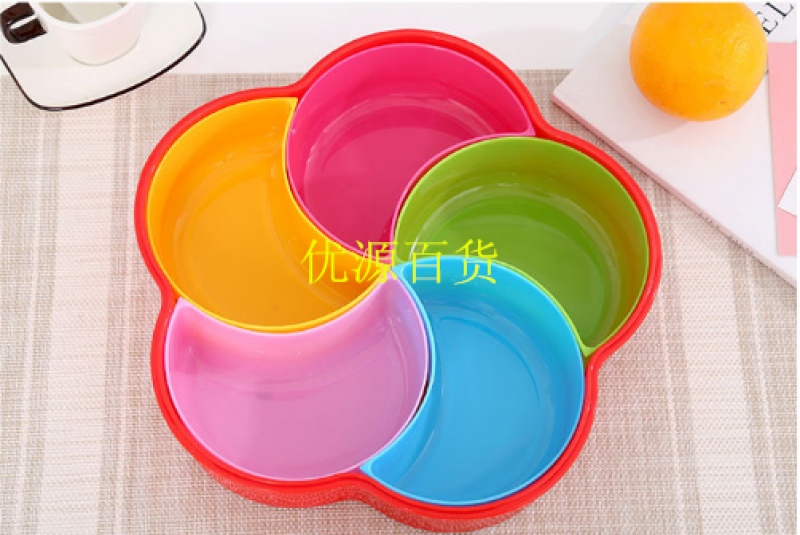 创意炫彩梅花水果时尚糖果盘 客厅零食盘塑料干果盒