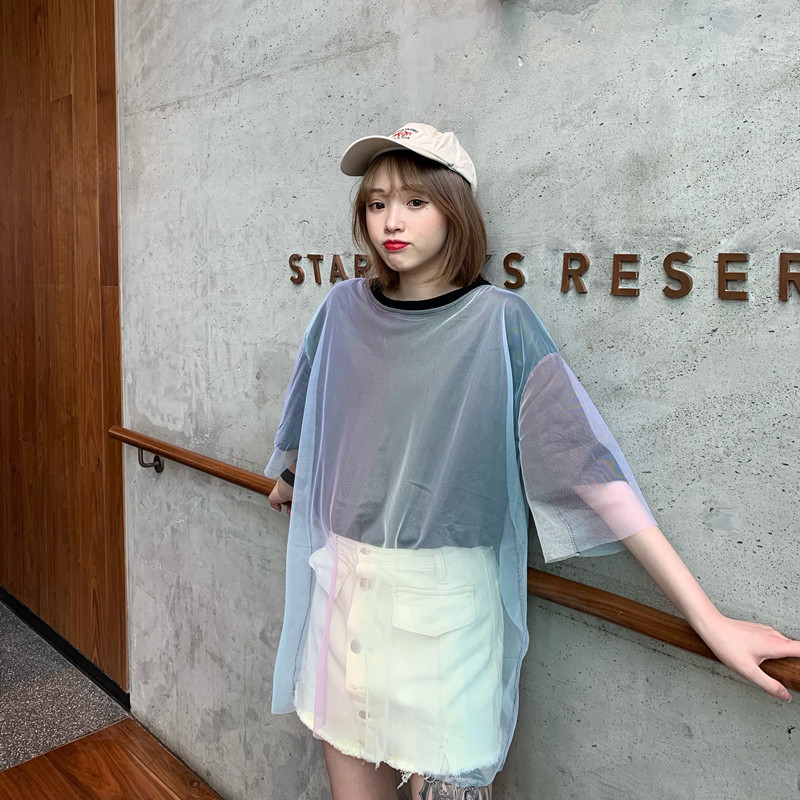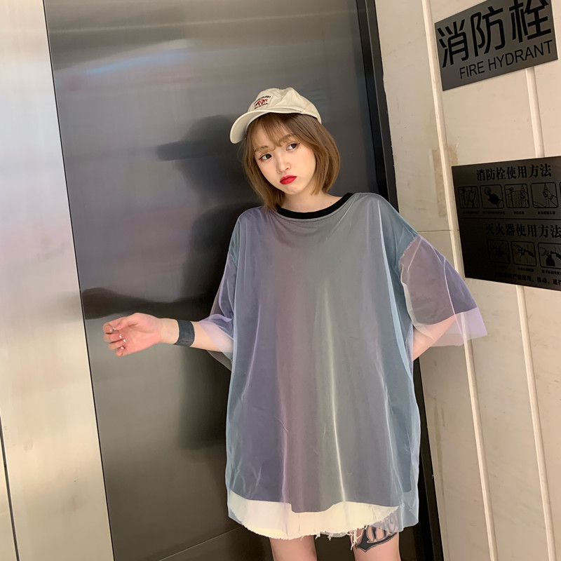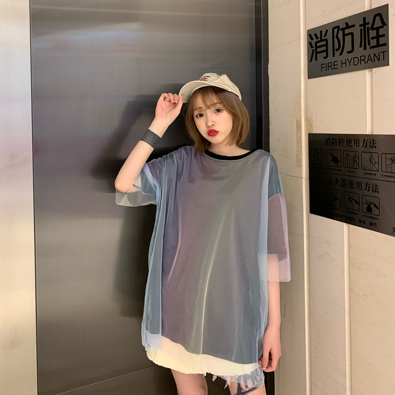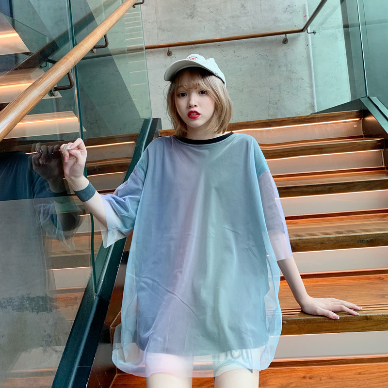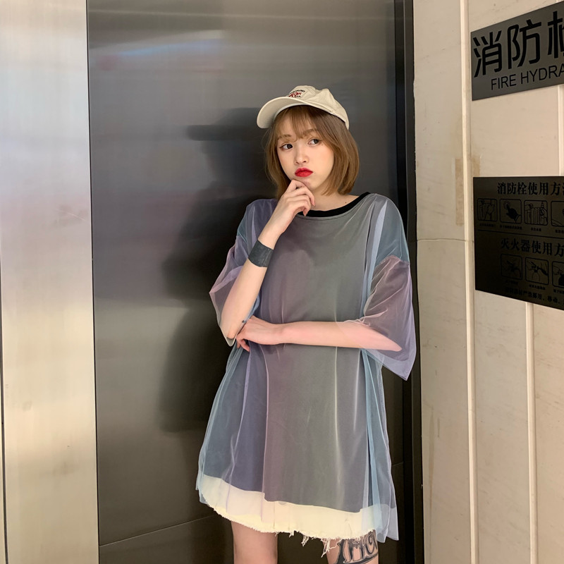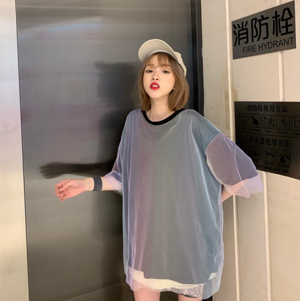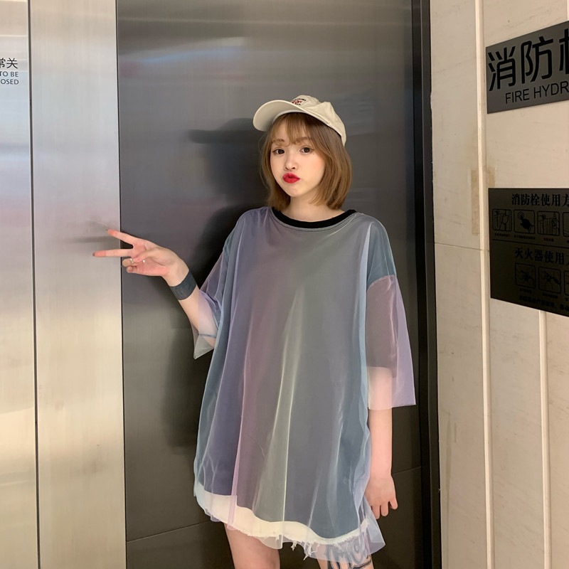 2019超火cec宽松百搭ins网红港味网纱假两件学生上衣