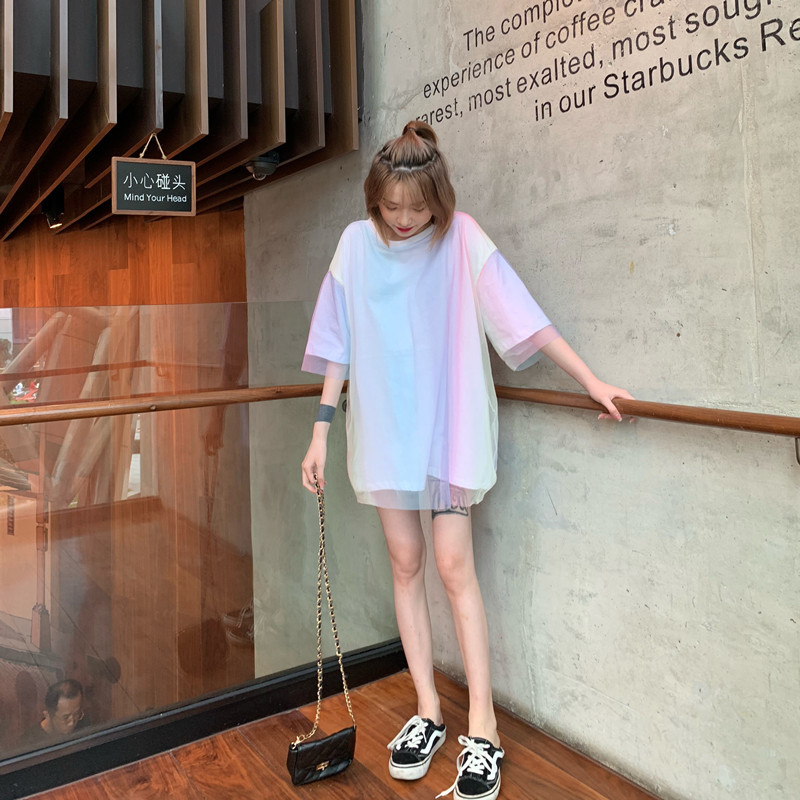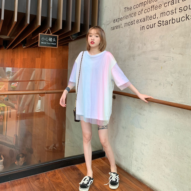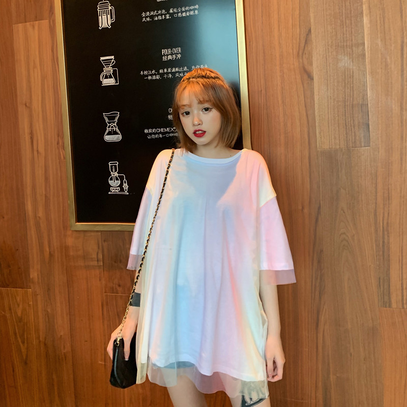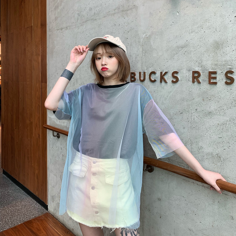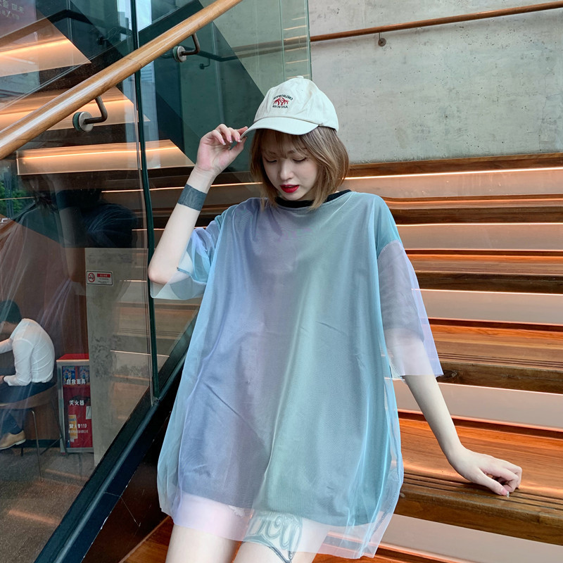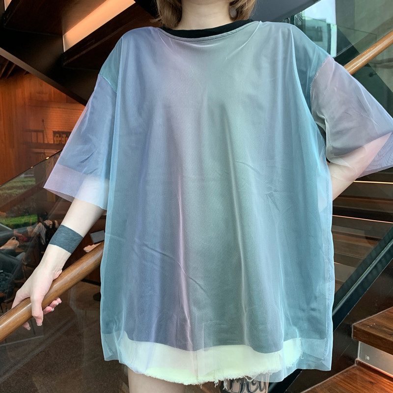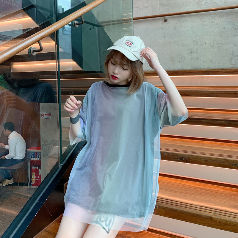 2019超火cec宽松百搭ins网红港味网纱假两件学生上衣