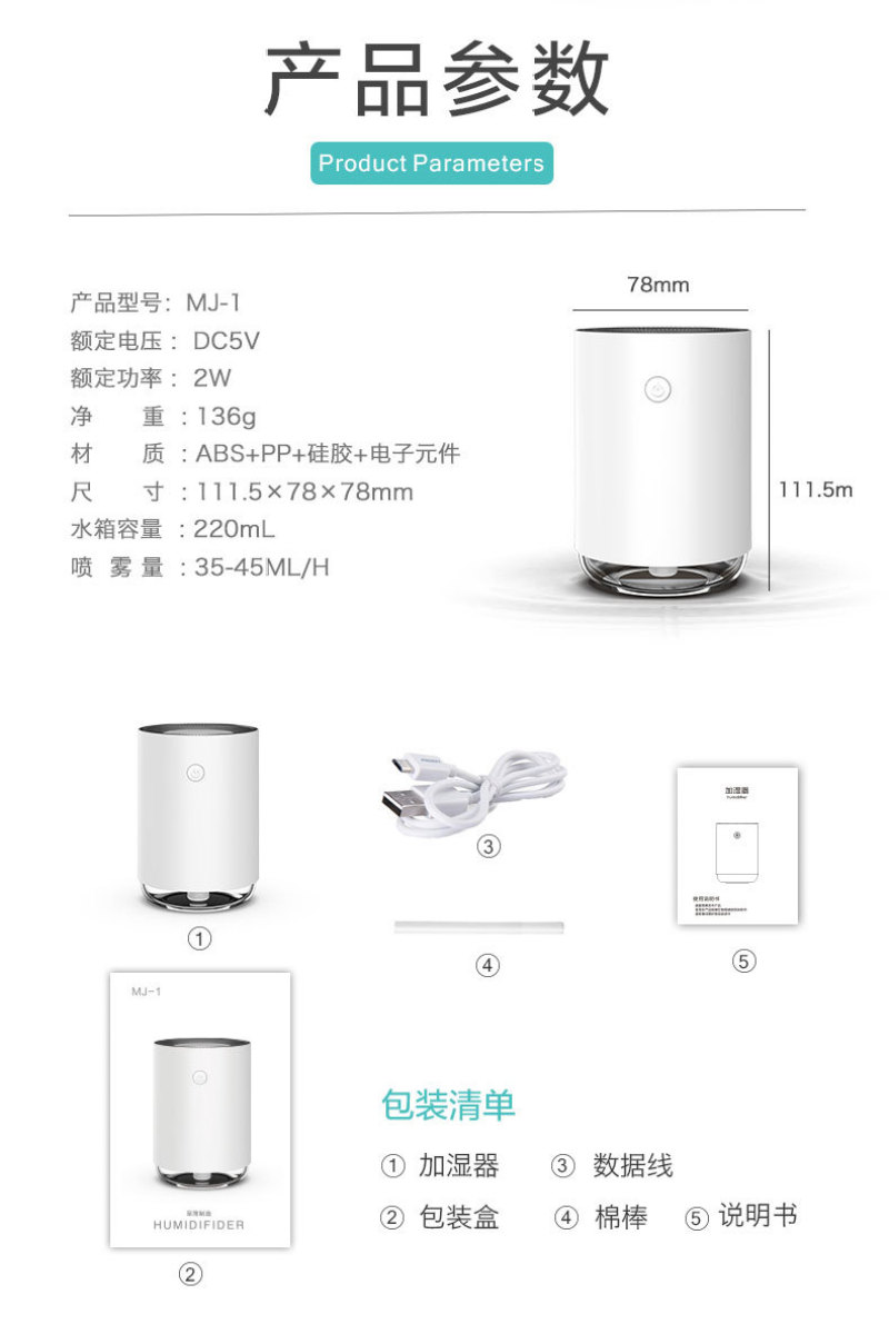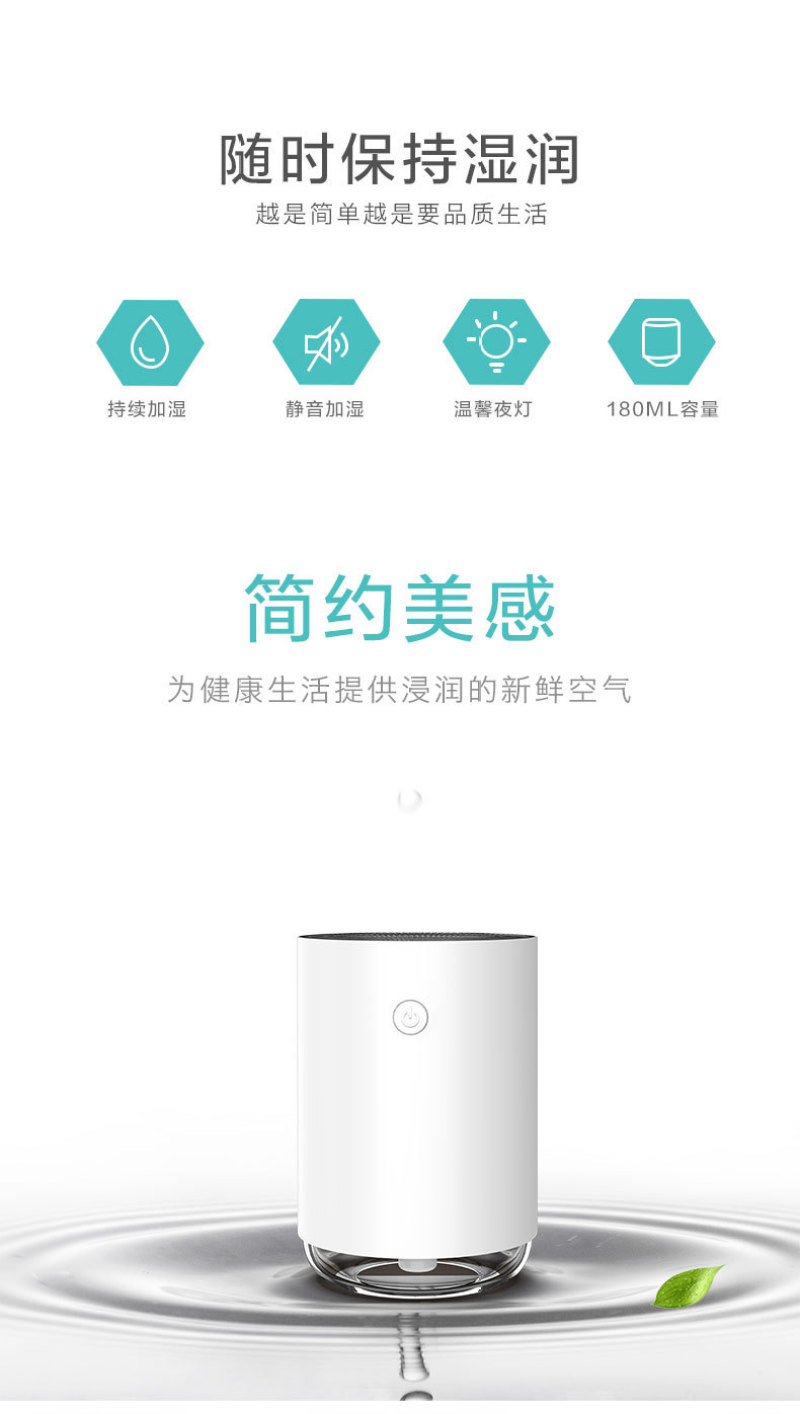 新款魔镜迷你夜灯加湿器喷雾 办公桌面usb充电便携式净化器车载