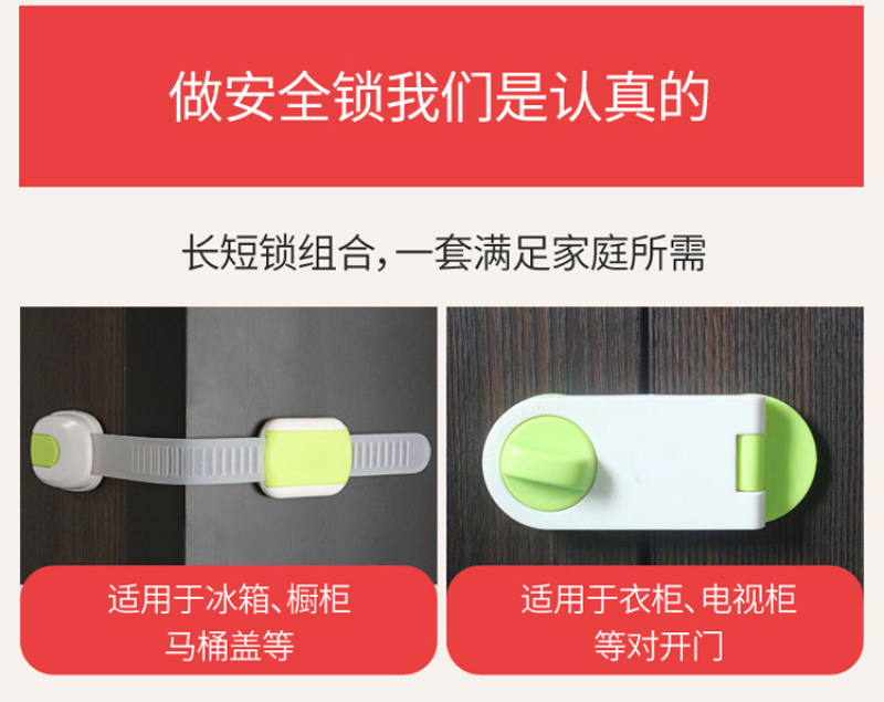 味康新款儿童安全防护用品 彩色对开锁多功能抽屉锁柜子锁