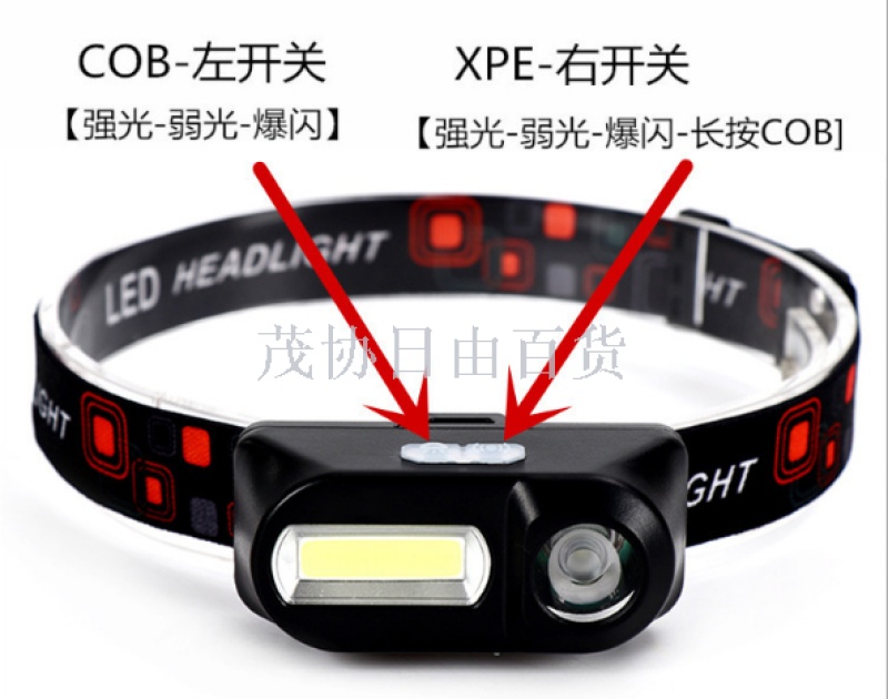 多功能头灯USB接口充电野营头灯户外钓鱼应急头戴式电筒照明灯