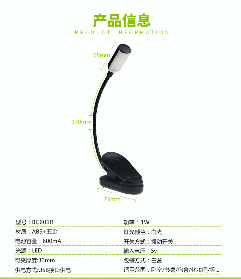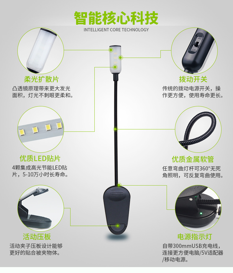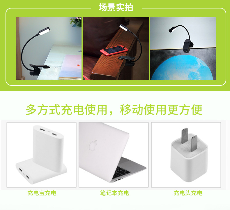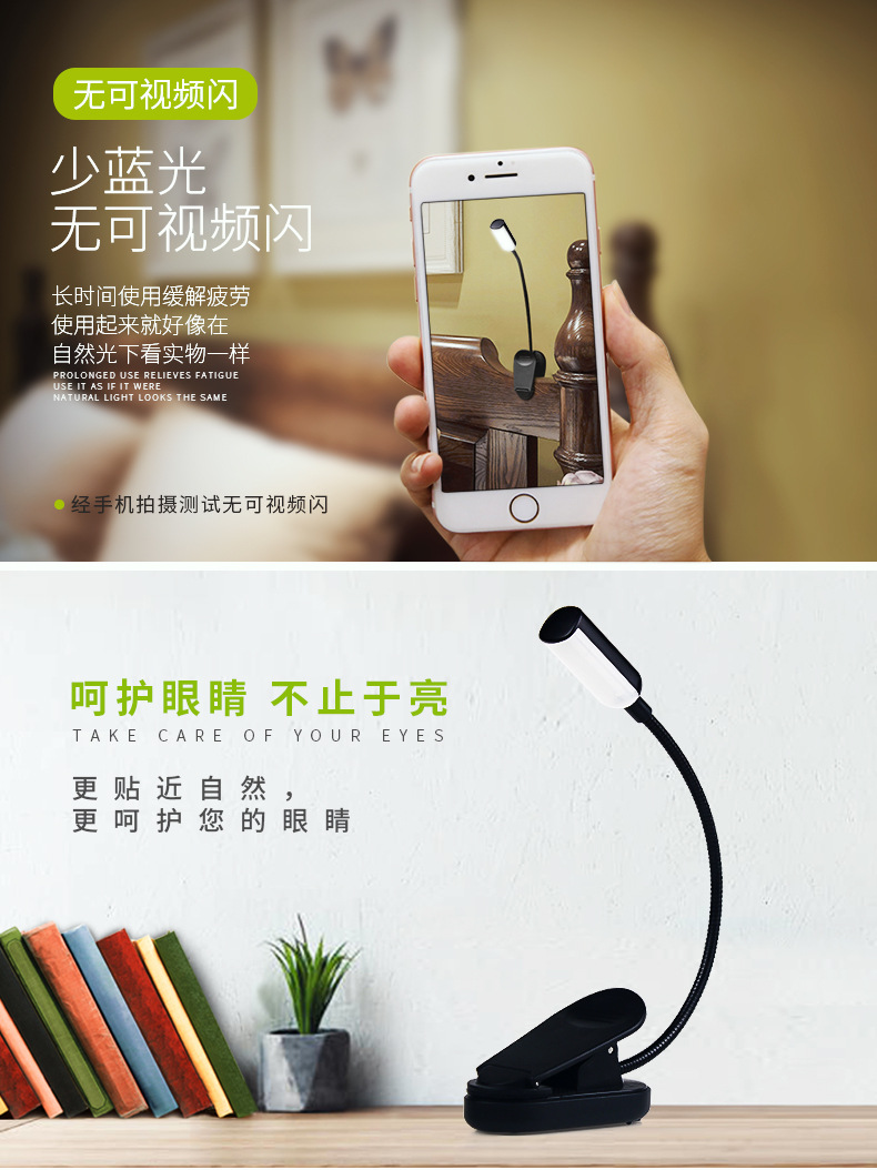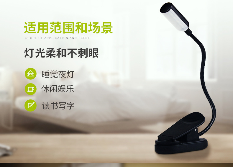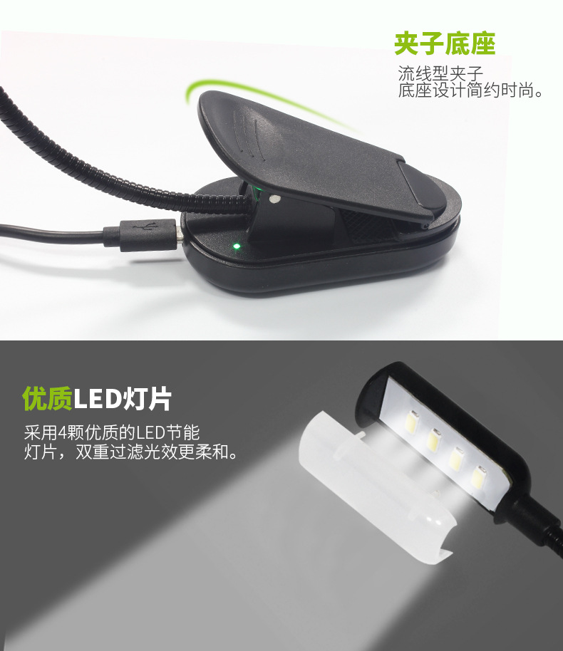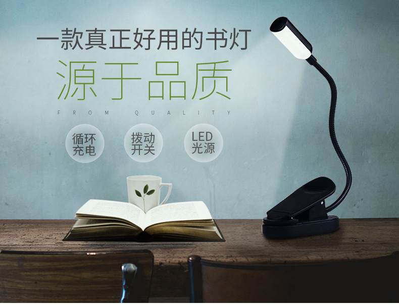 外贸专供usb充电夹子书灯学生学习led阅读护眼小台灯宿舍读书灯