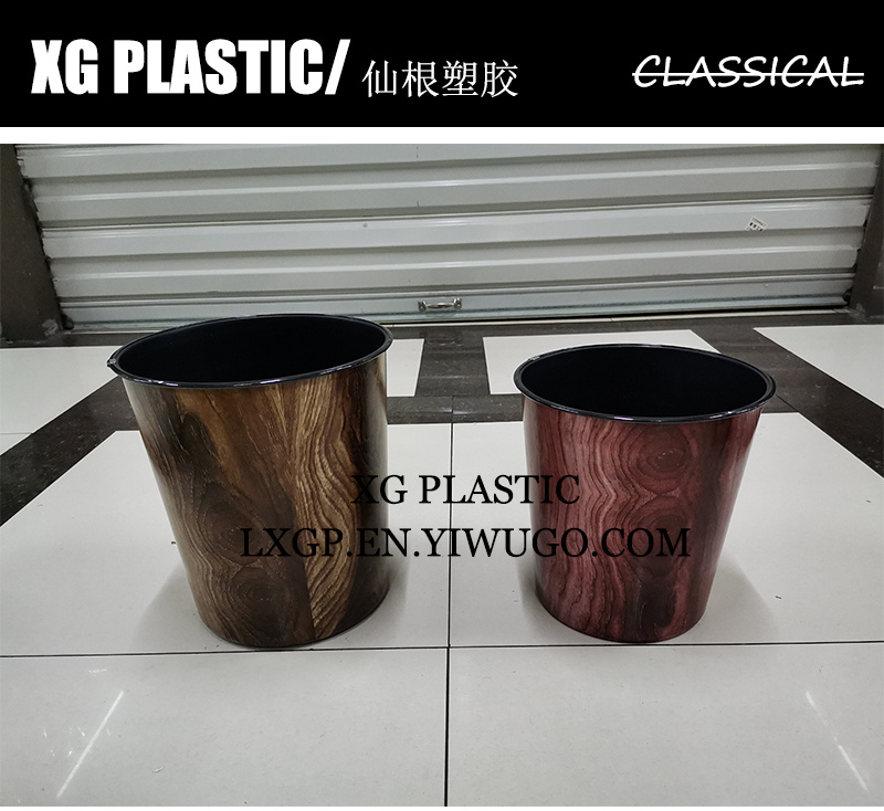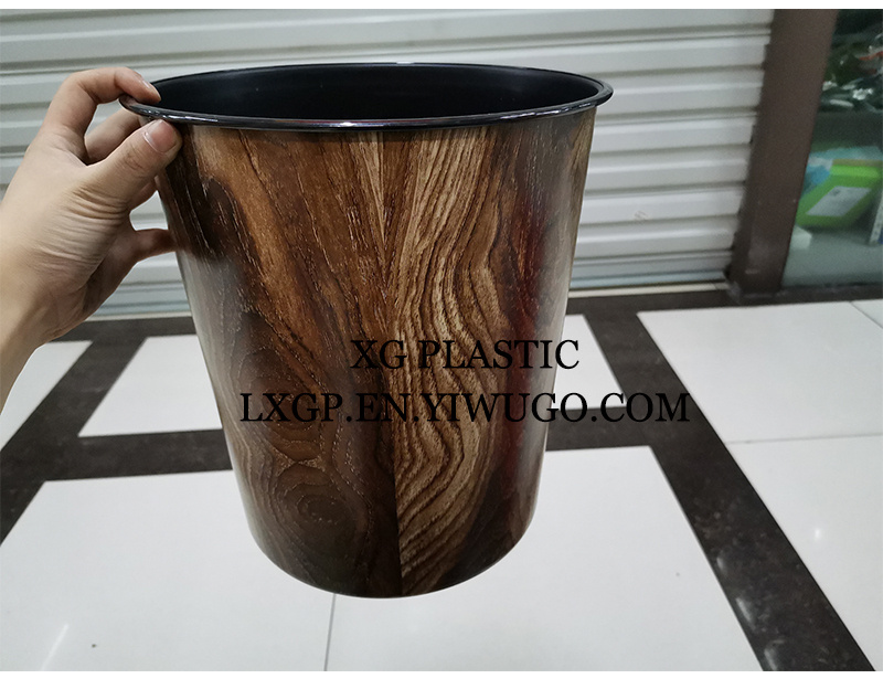 塑料垃圾桶简约木纹欧式纸篓室内家用垃圾筒圆形无盖卫生筒塑料桶