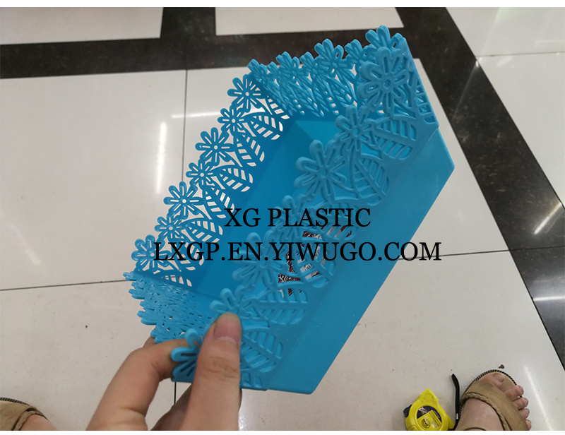 创意收纳篮正方镂空小花客厅零食水果篮时尚桌面置物篮塑料杂物篮
