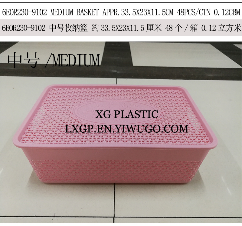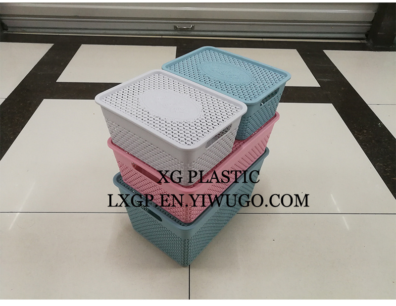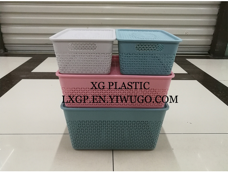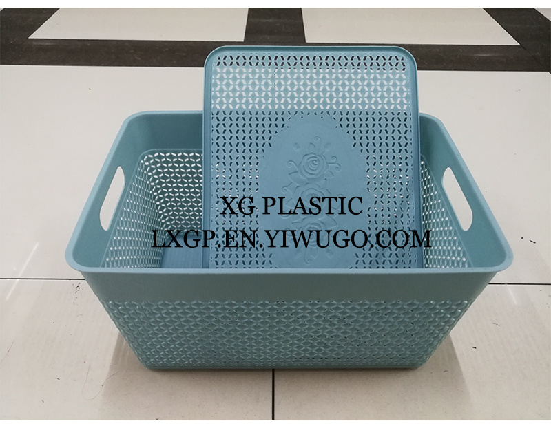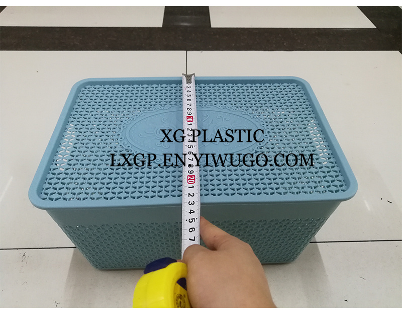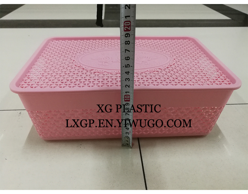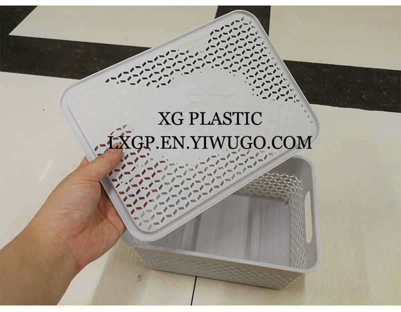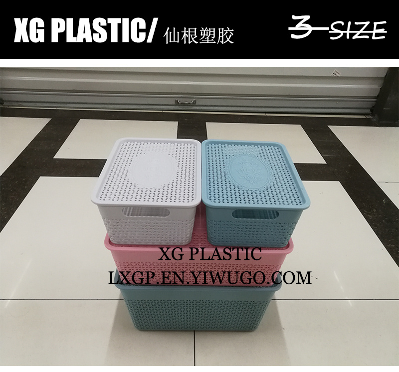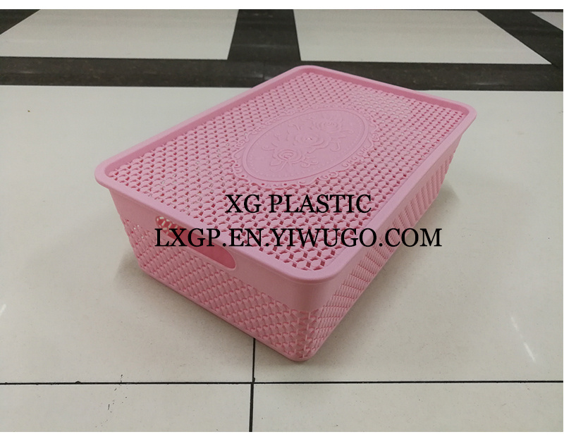 塑料收纳篮带盖3个尺寸时尚玫瑰花镂空置物篮整理箱新款储物盒