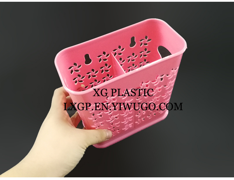 塑料两格筷笼复古花镂空沥水筷笼刀叉笼厨房长方多功能餐具收纳架