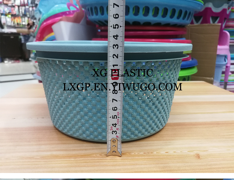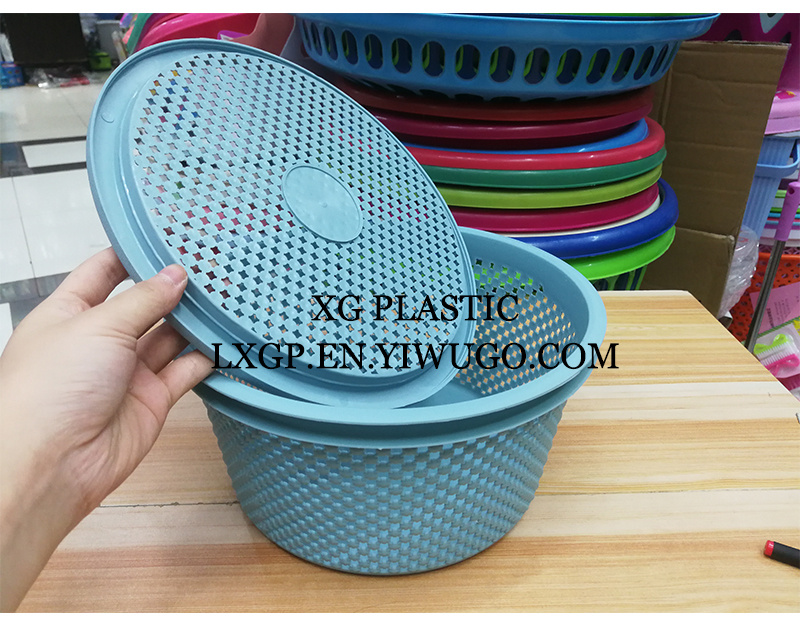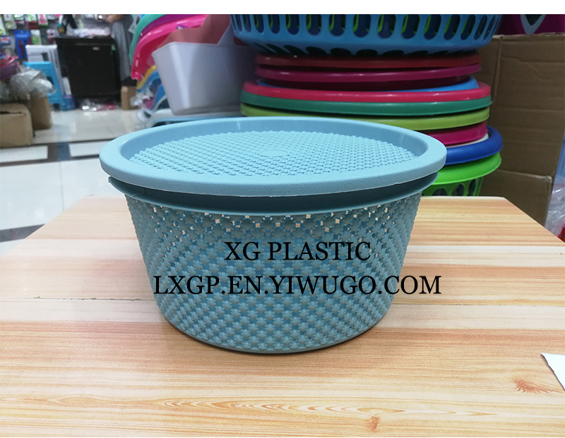 新款圆形镂空收纳篮带盖塑料置物篮防尘水果篮多功能杂物收纳篮