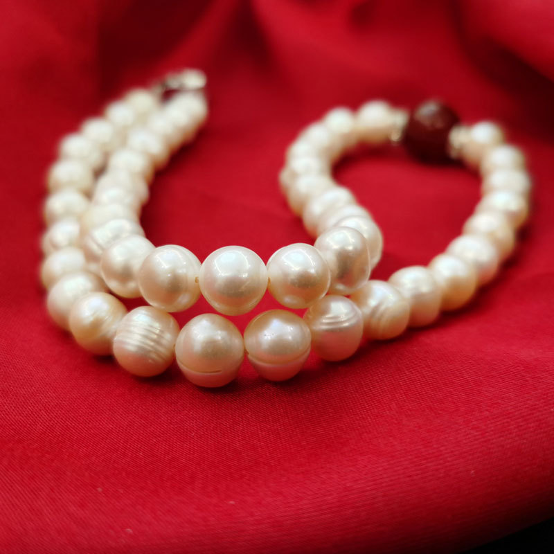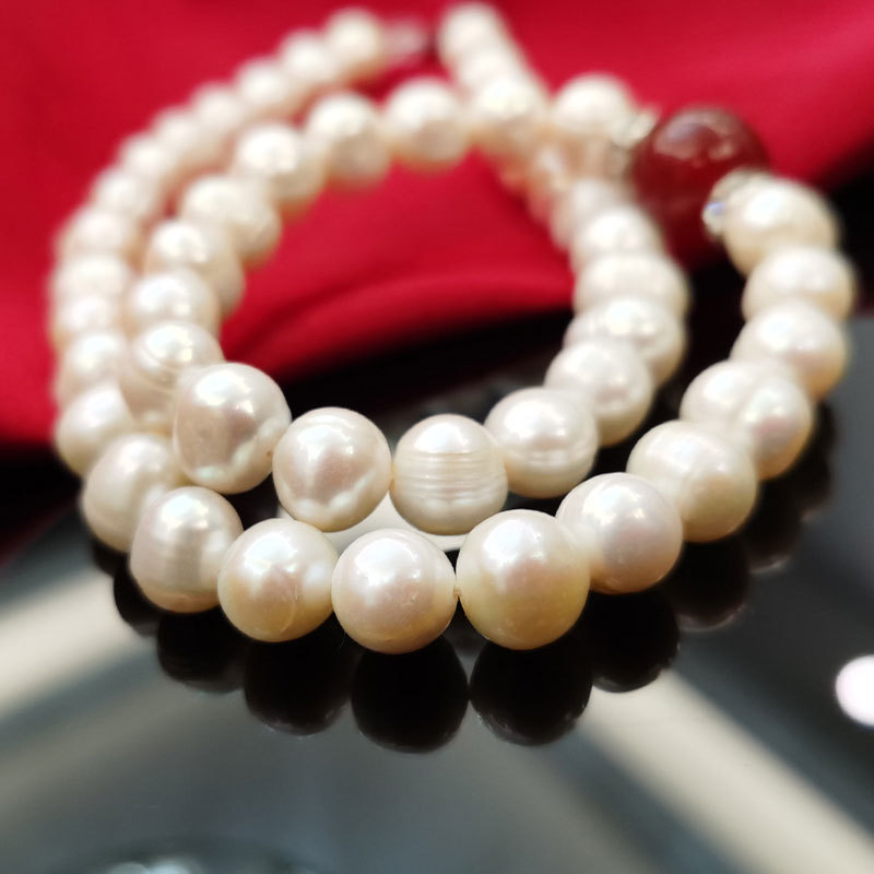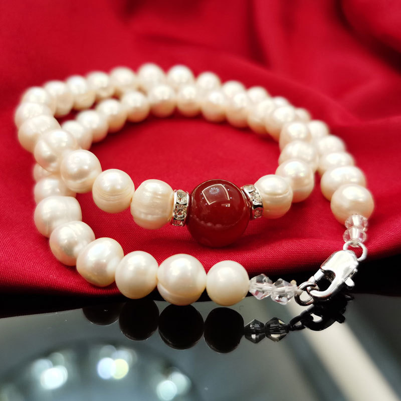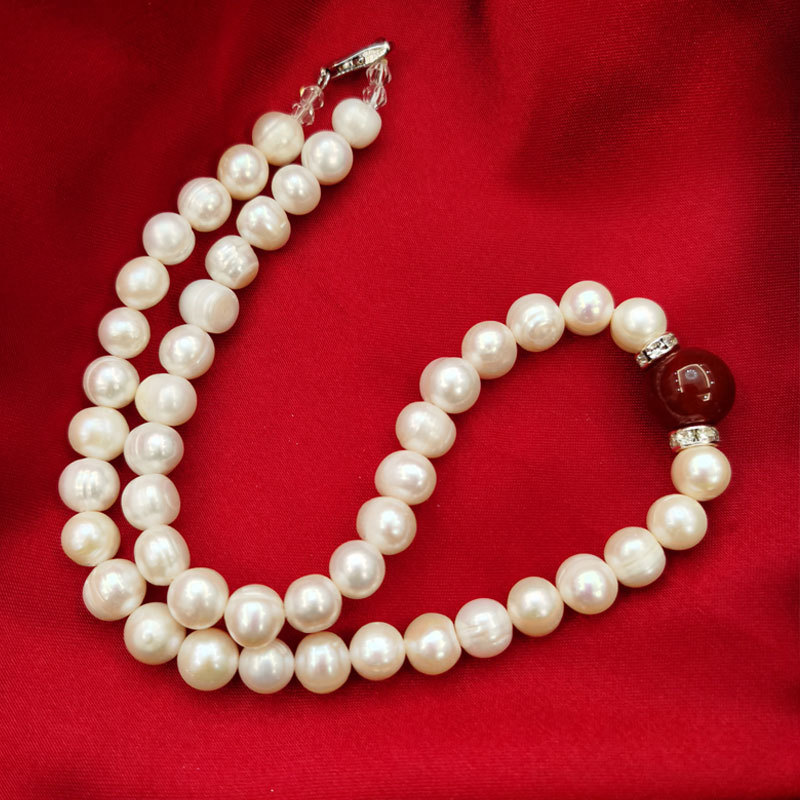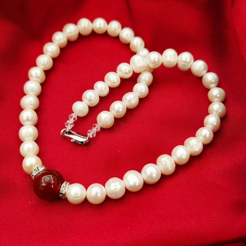 批发9-10mm天然珍珠红玛瑙项链服饰配件三八妇女节热销
