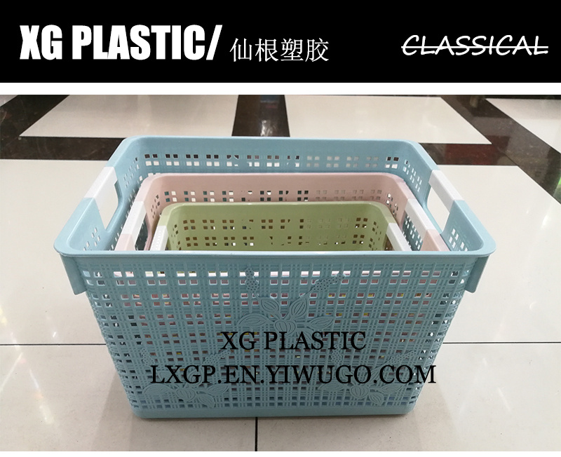 长方收纳筐塑料镂空格子花朵时尚新款杂物玩具衣物整理筐收纳篮
