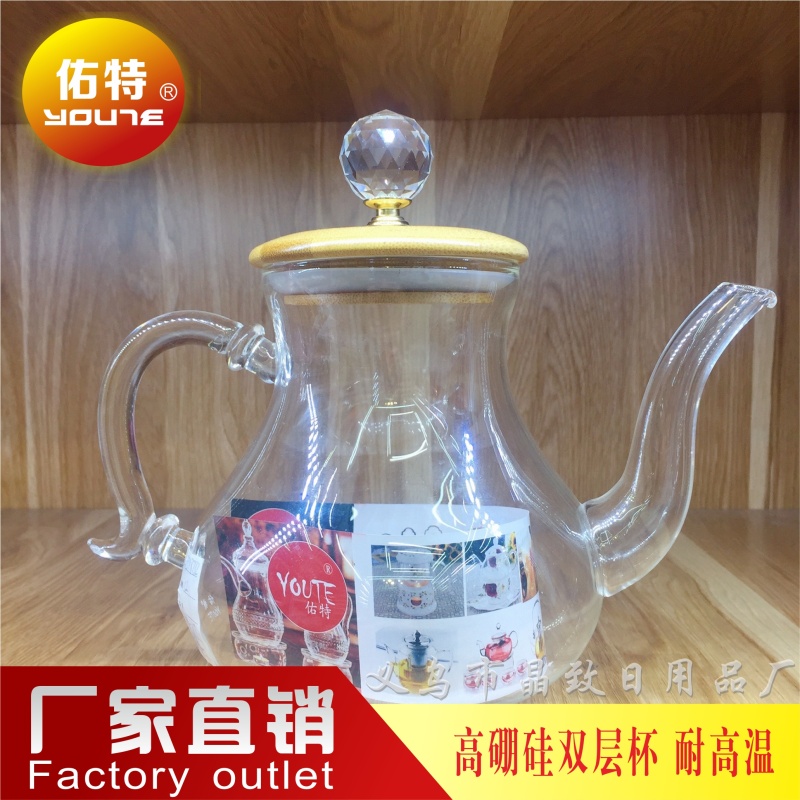 晶致木头盖直火壶家用耐热高硼硅玻璃茶壶过滤壶泡茶壶礼品咖啡壶