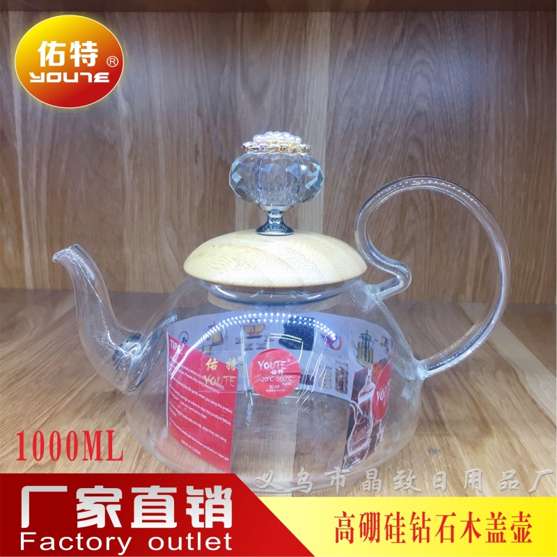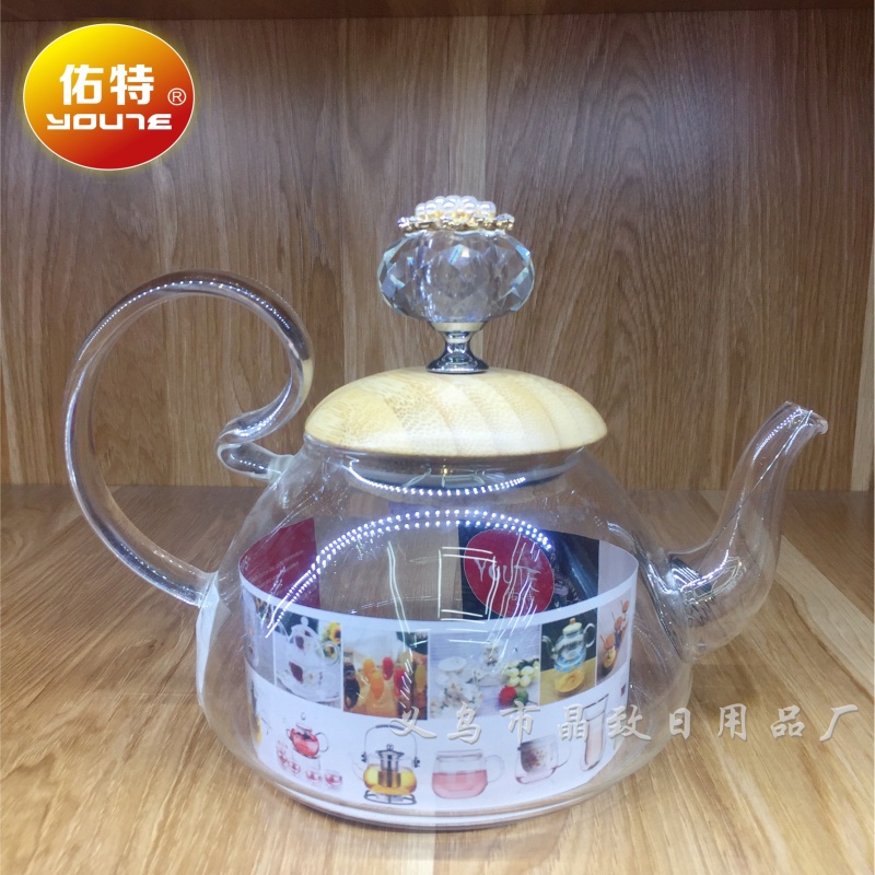 晶致木头盖直火壶家用耐热高硼硅玻璃茶壶过滤壶泡茶壶礼品咖啡壶