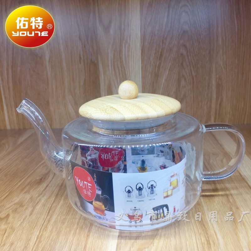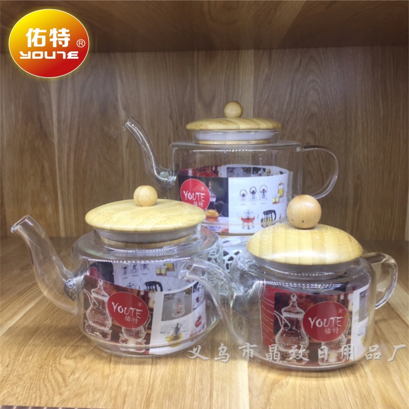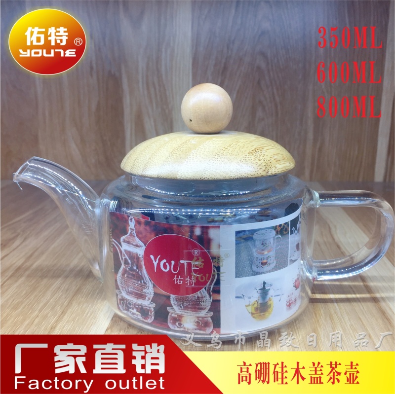 Jingzhi Wooden Cover Direct Fire Pot Household Heat-Resistant Borosilicate Glass Teapot Filtering Pot Teapot Gift Coffee Pot