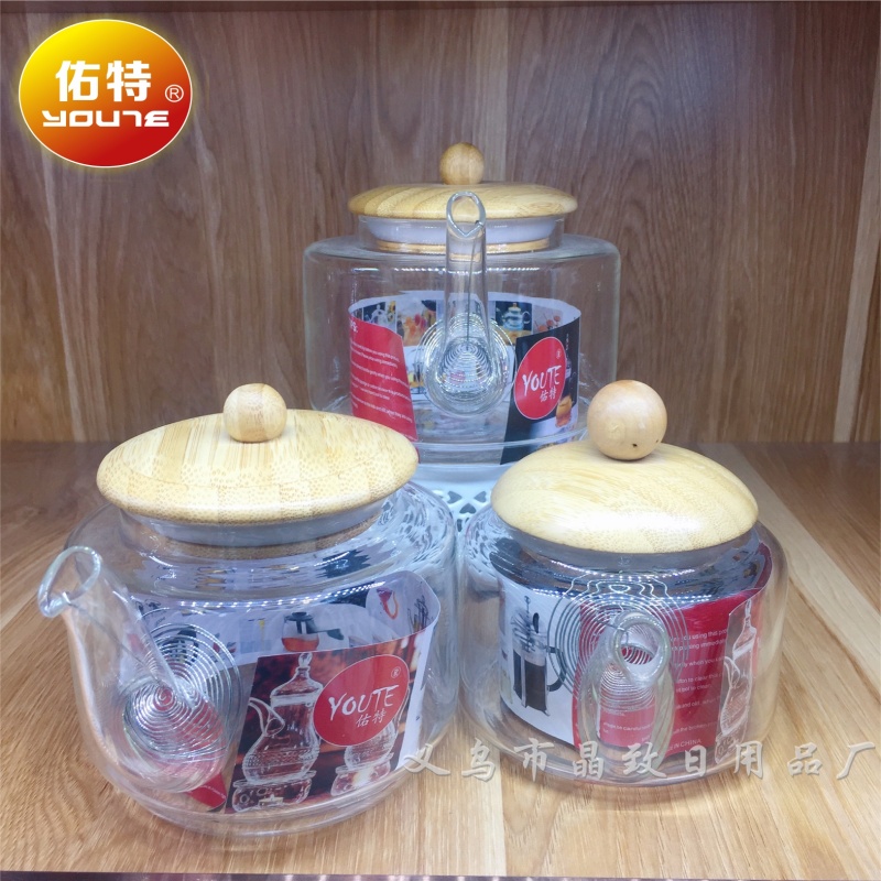 晶致木头盖直火壶家用耐热高硼硅玻璃茶壶过滤壶泡茶壶礼品咖啡壶