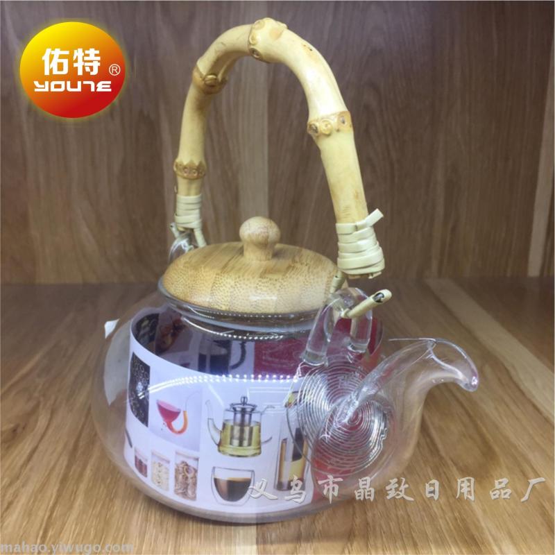 晶致木头盖直火壶家用耐热高硼硅玻璃茶壶过滤壶泡茶壶礼品咖啡壶