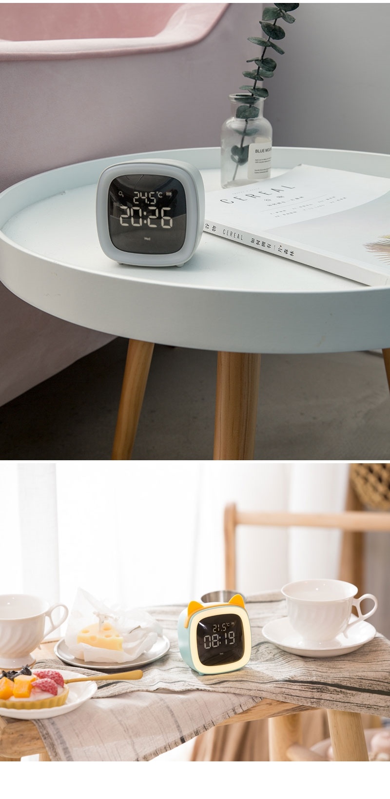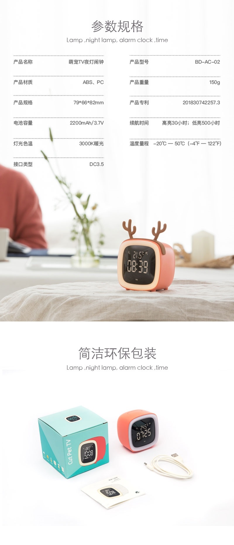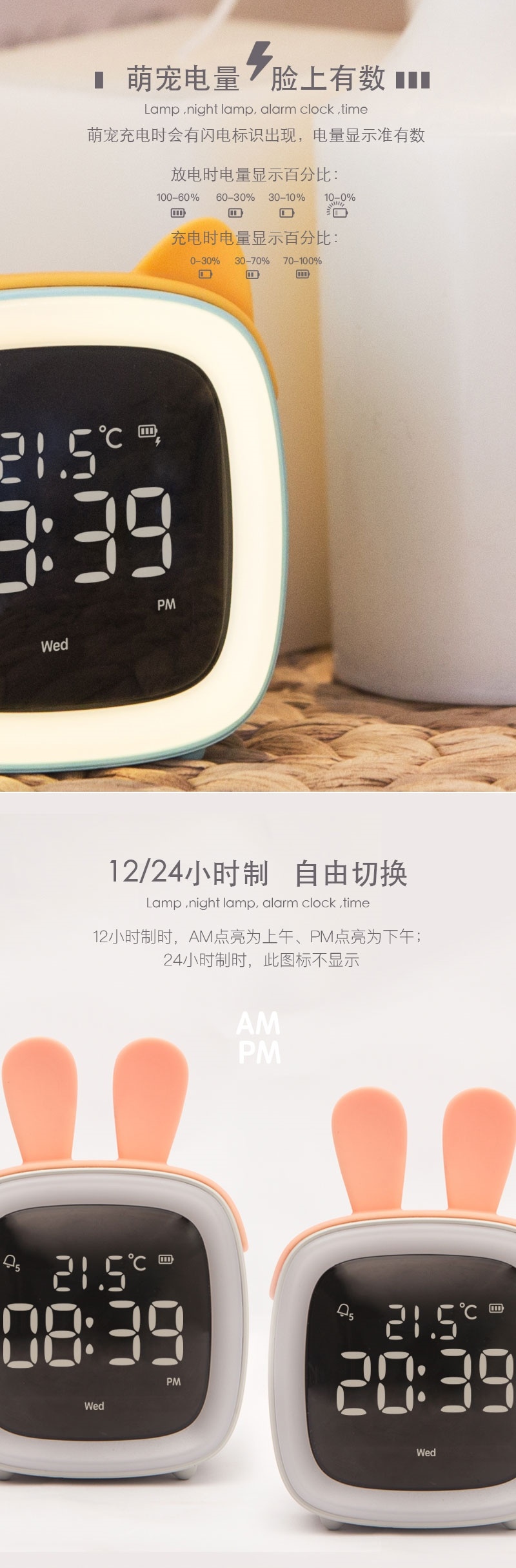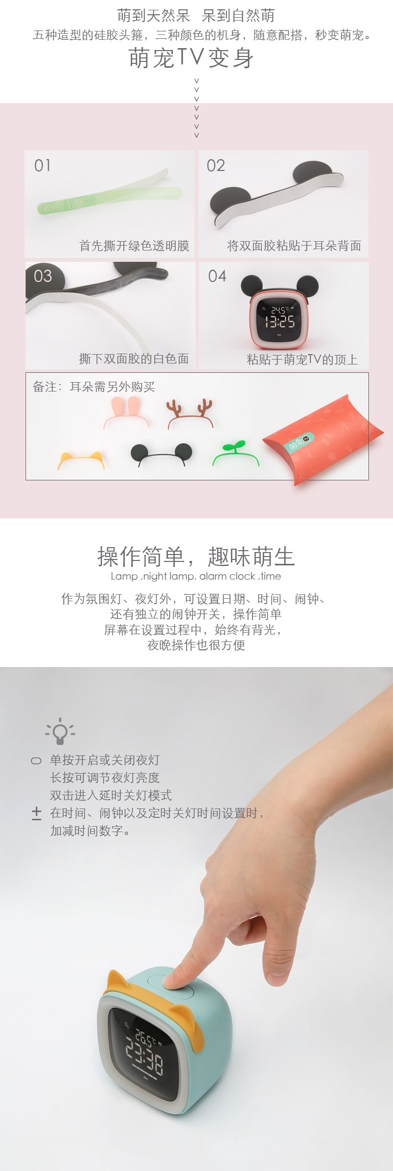 萌宠TV闹钟学生用闹铃多功能卧室可爱卡通创意声控Led时钟床头灯