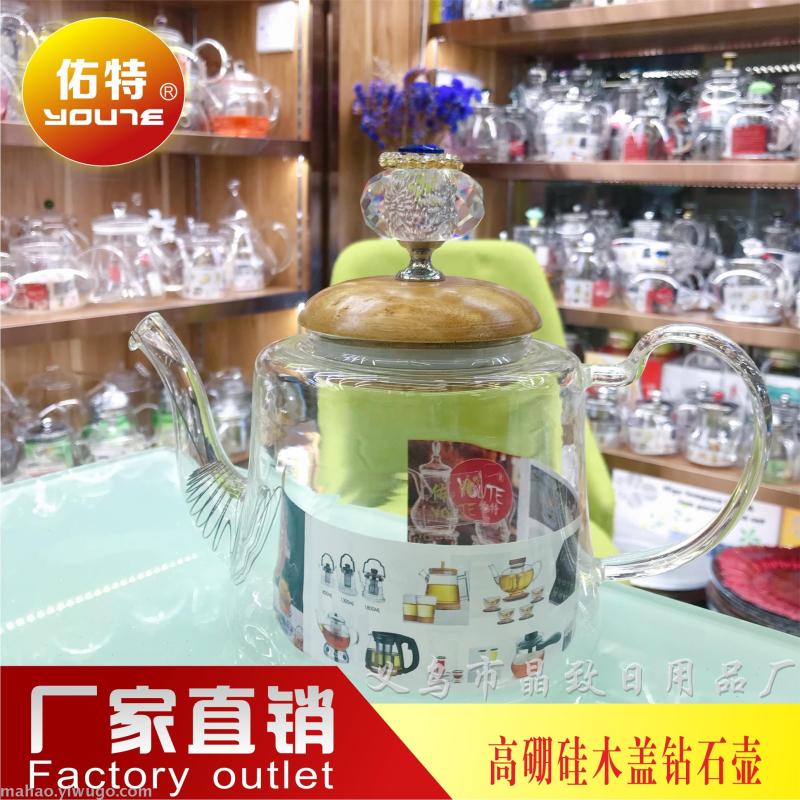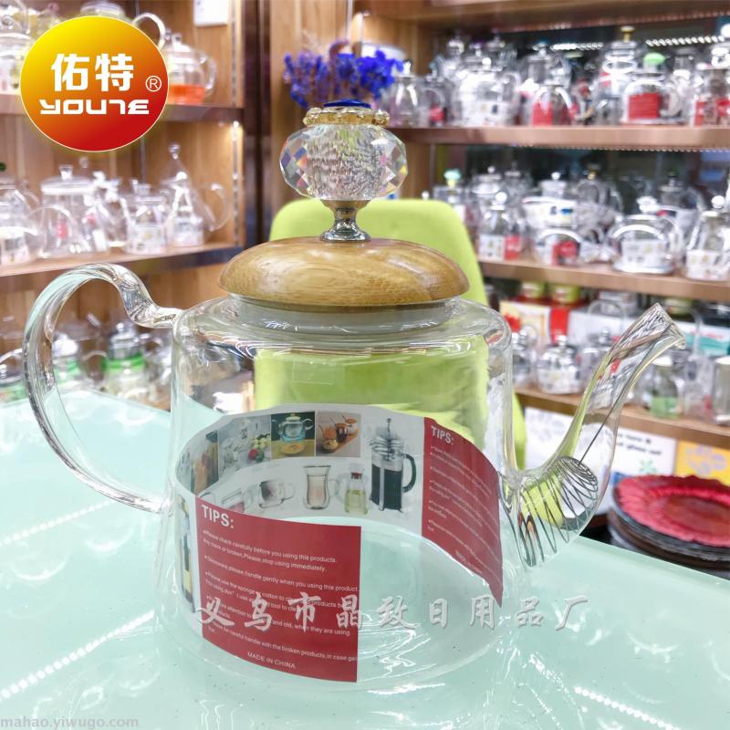 晶致木头盖直火壶家用耐热高硼硅玻璃茶壶过滤壶泡茶壶礼品咖啡壶