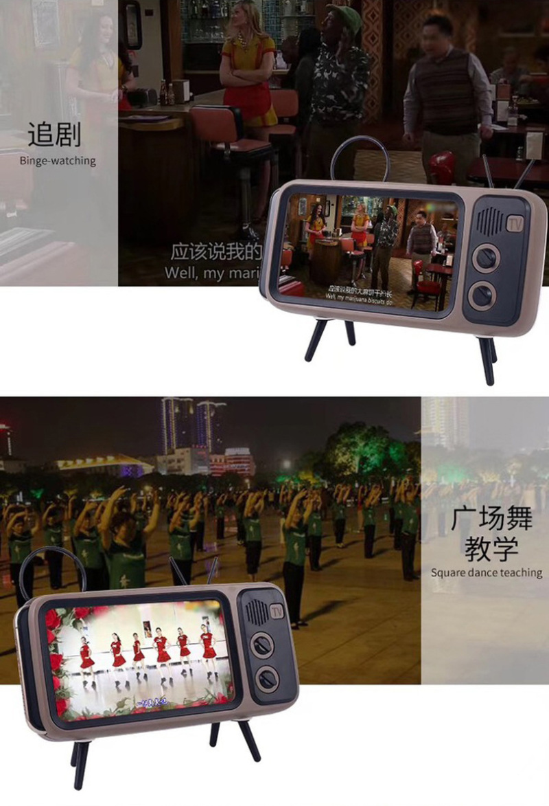 复古老电视机tv手机支架迷你插卡蓝牙音箱多功能无线小音响升级版