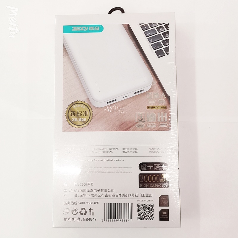 泽奇20000毫安手机移动电源大容量快充2.1A充电宝
