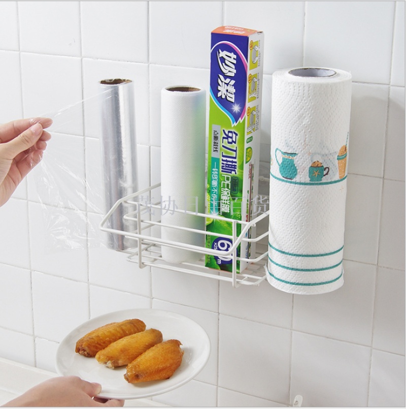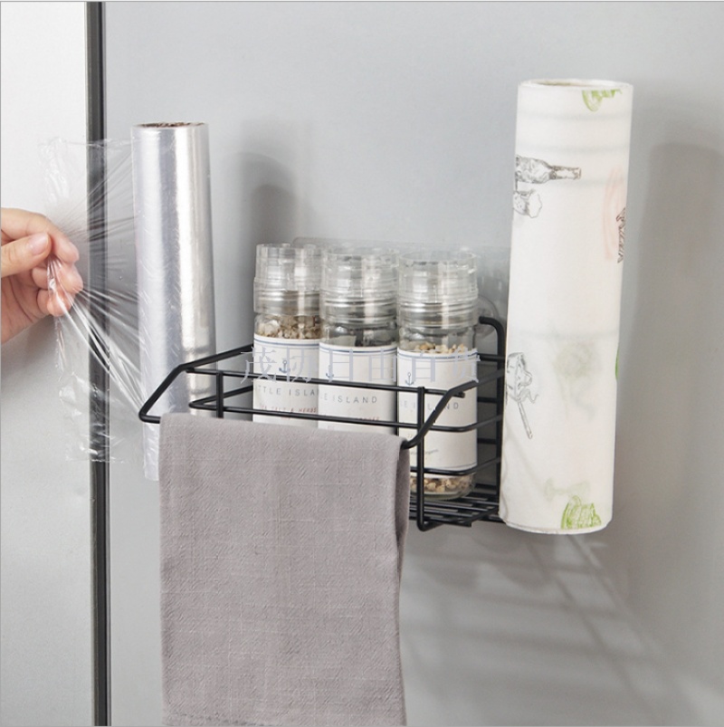 厨房冰箱侧面保鲜膜收纳架 多功能免打孔毛巾抹布置物架