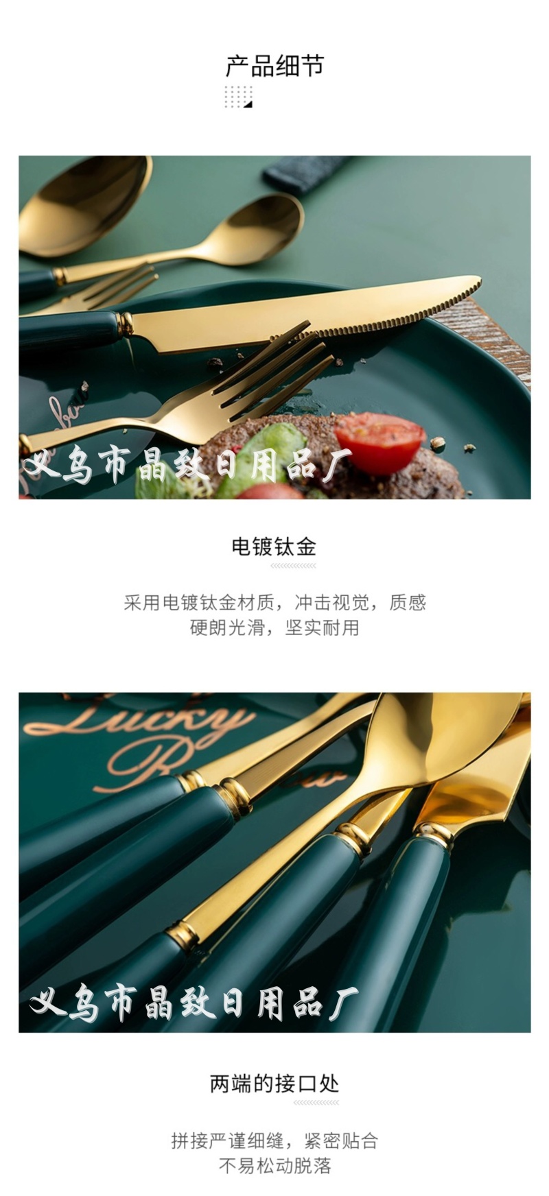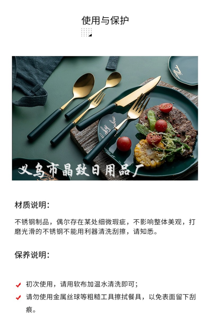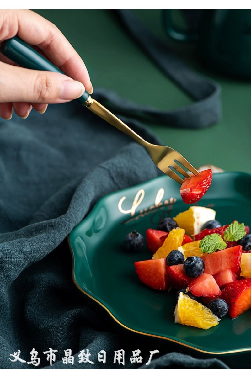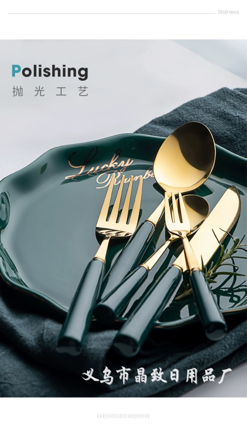 晶致优质新款墨绿色陶瓷柄餐具镀金不锈钢刀叉勺西餐具家用餐具