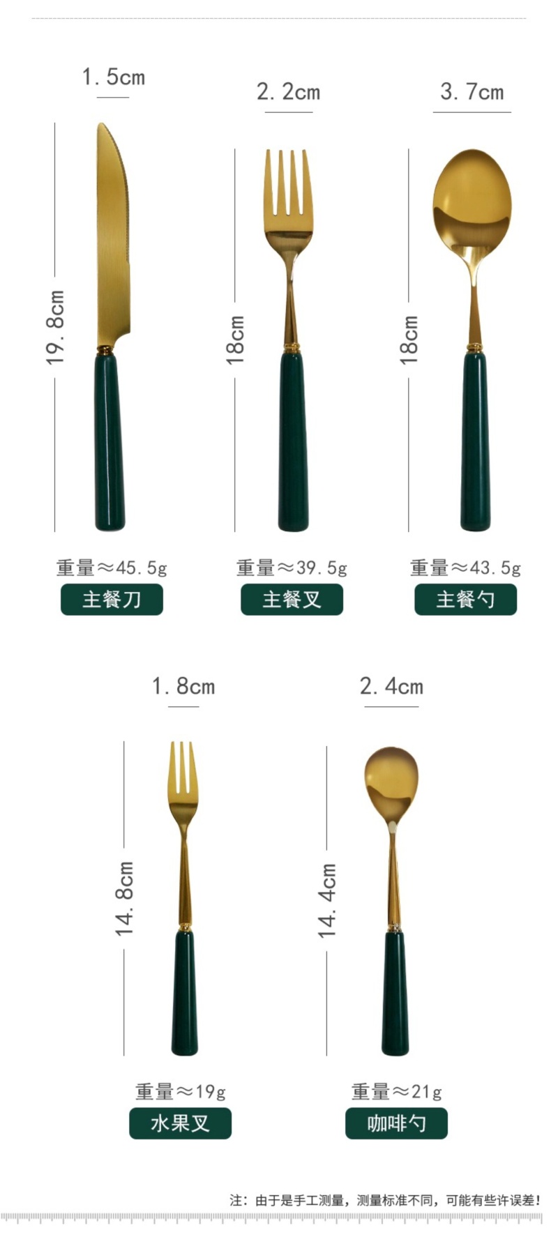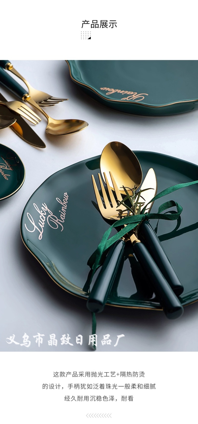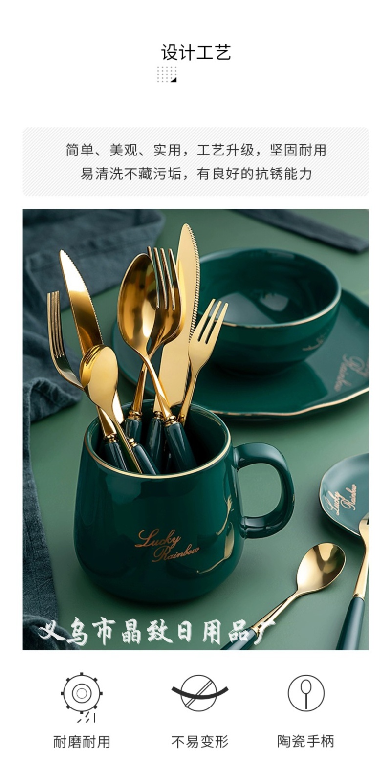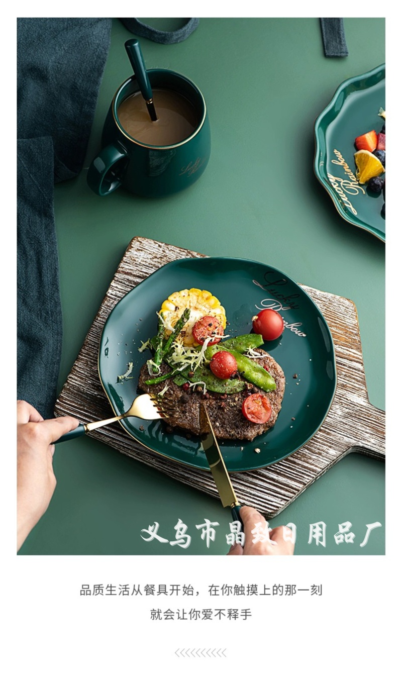 晶致优质新款墨绿色陶瓷柄餐具镀金不锈钢刀叉勺西餐具家用餐具