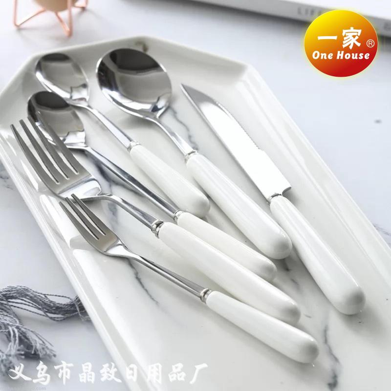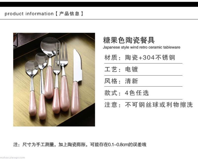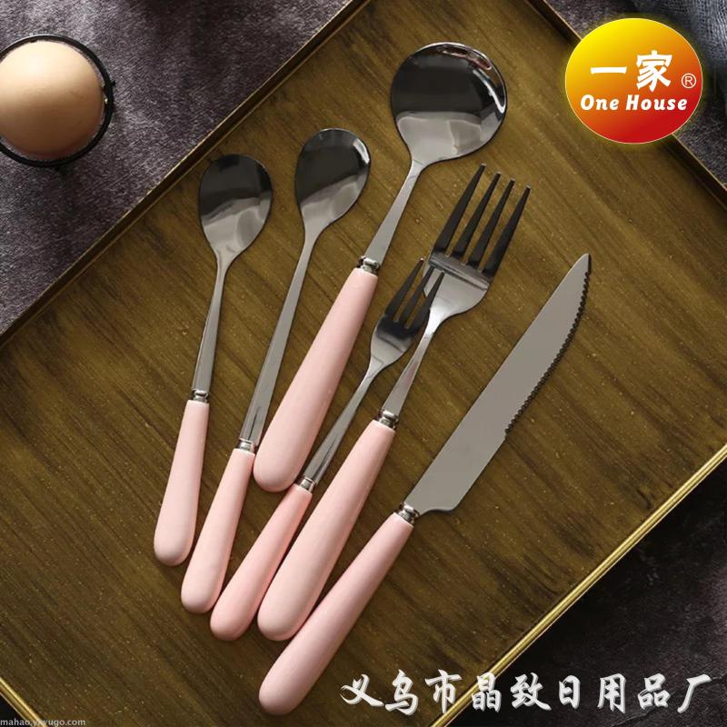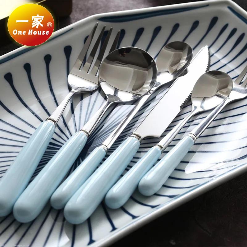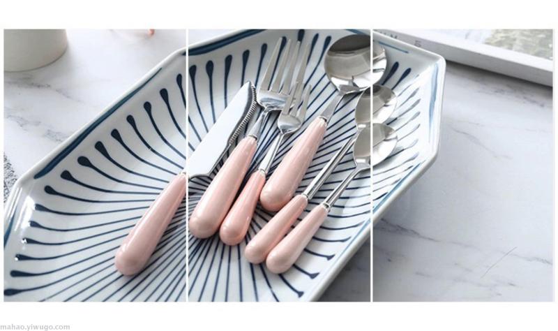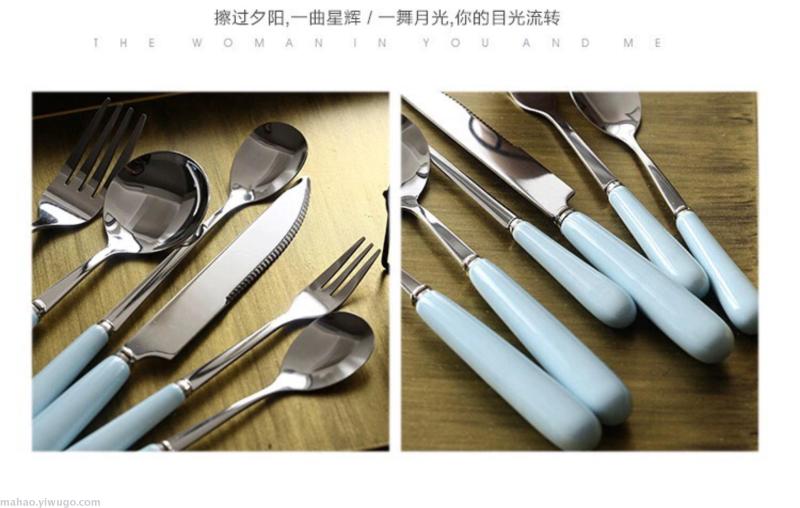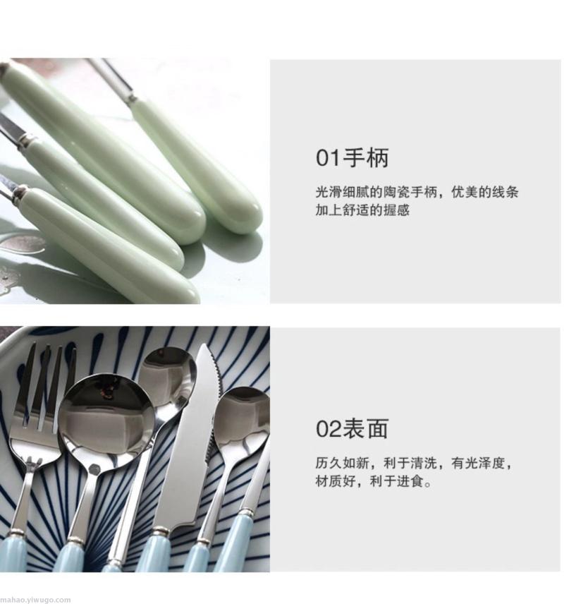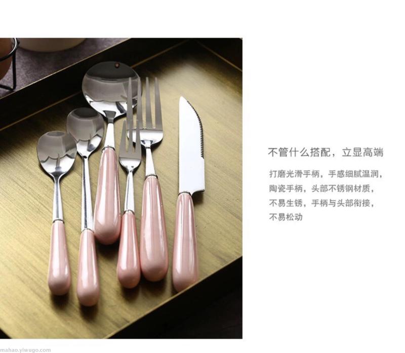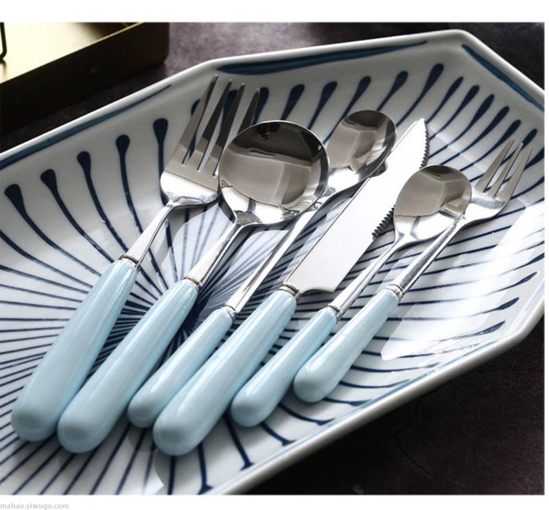 厂家直销陶瓷柄不锈钢餐具创意高档色釉刀叉勺套装酒店西餐具
