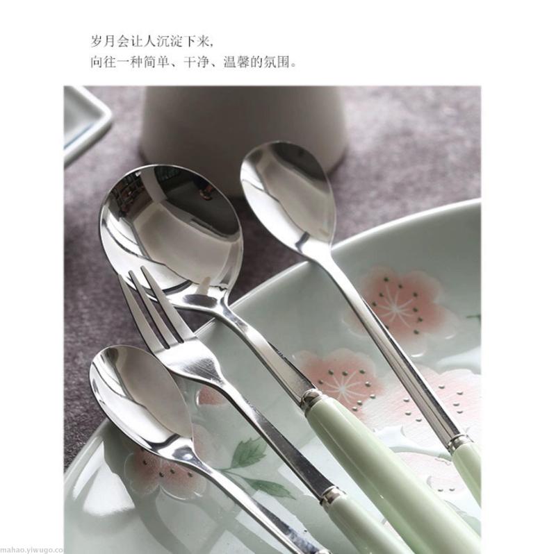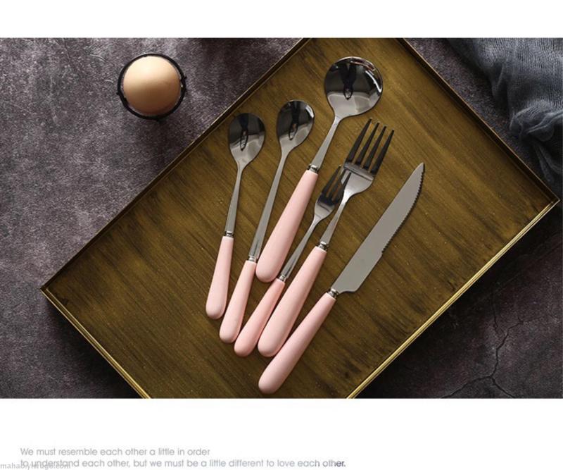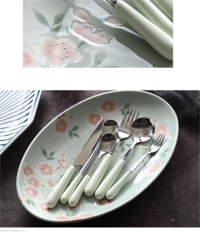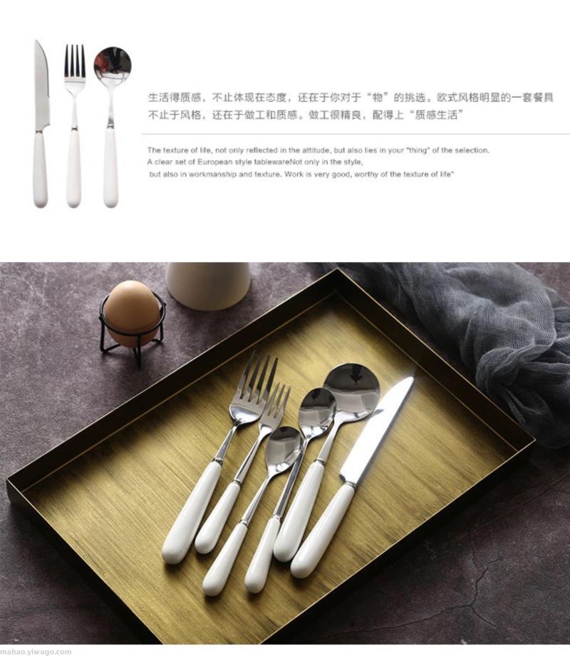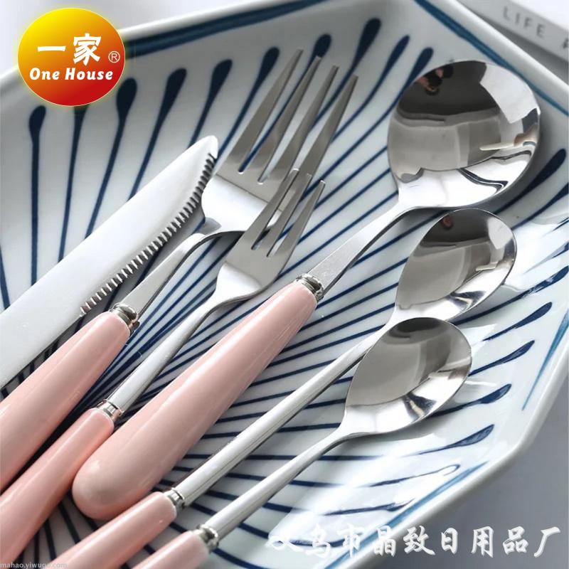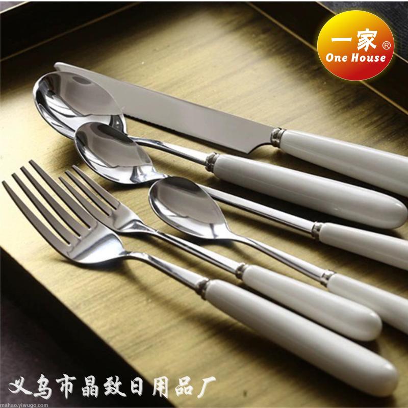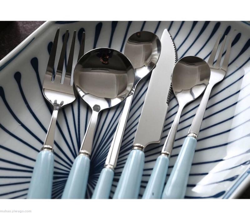 厂家直销陶瓷柄不锈钢餐具创意高档色釉刀叉勺套装酒店西餐具