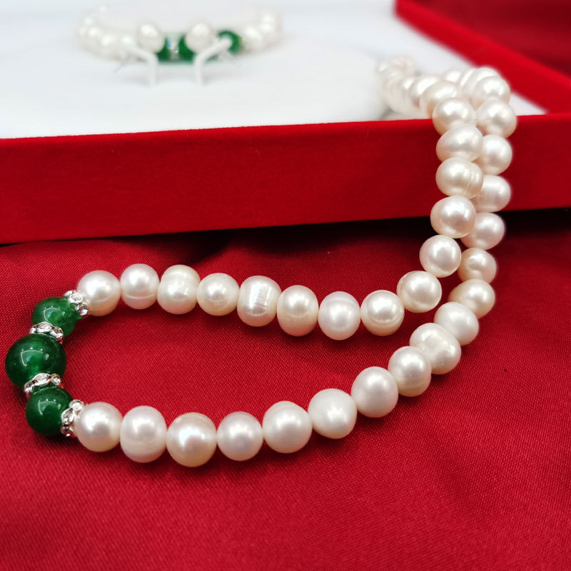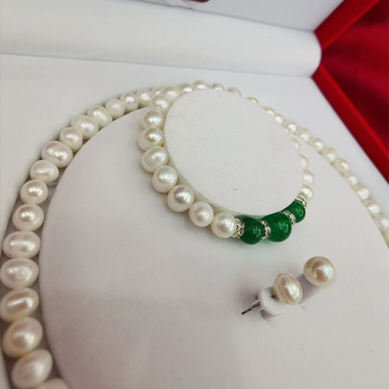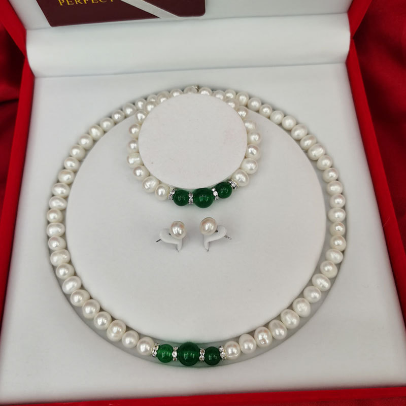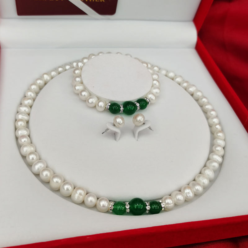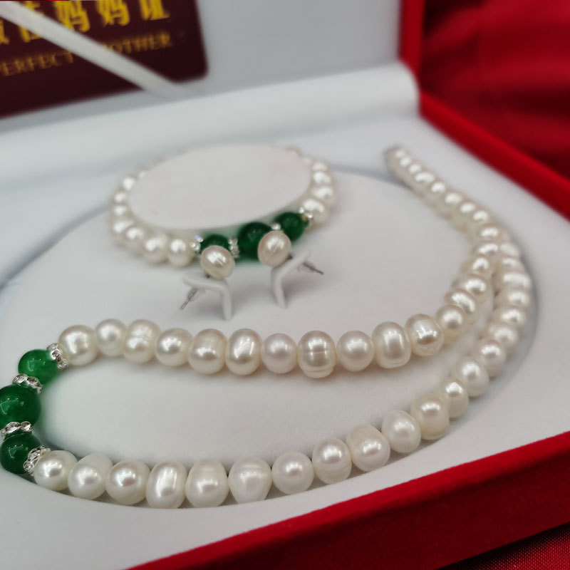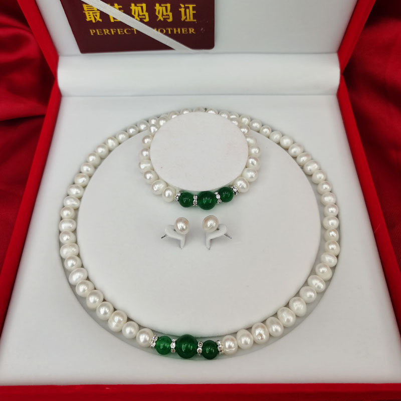 批发天然淡水珍珠首饰套装项链手链耳钉绿玉母亲节送妈妈商场促销