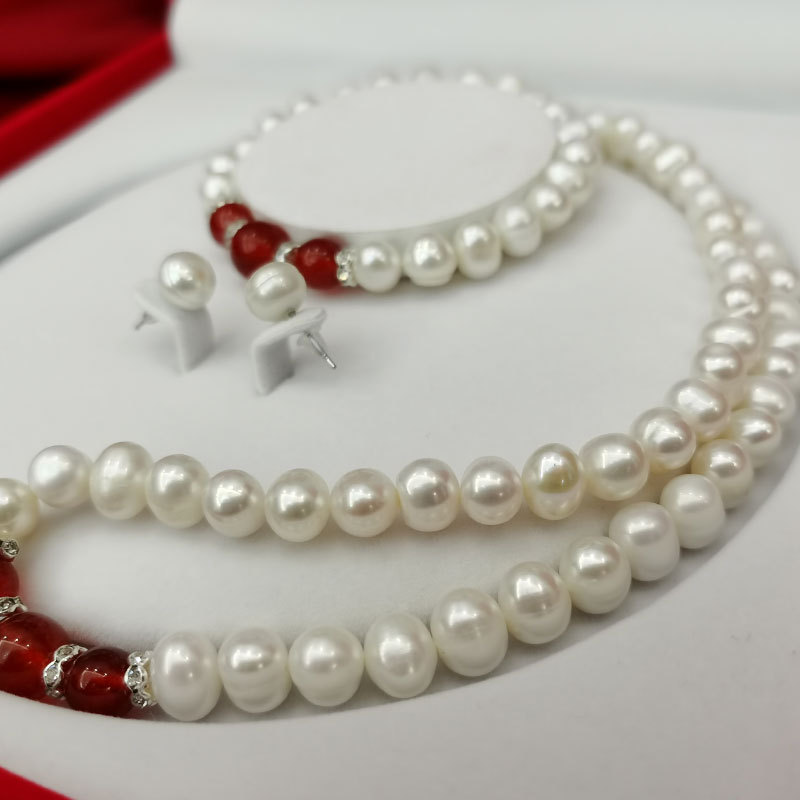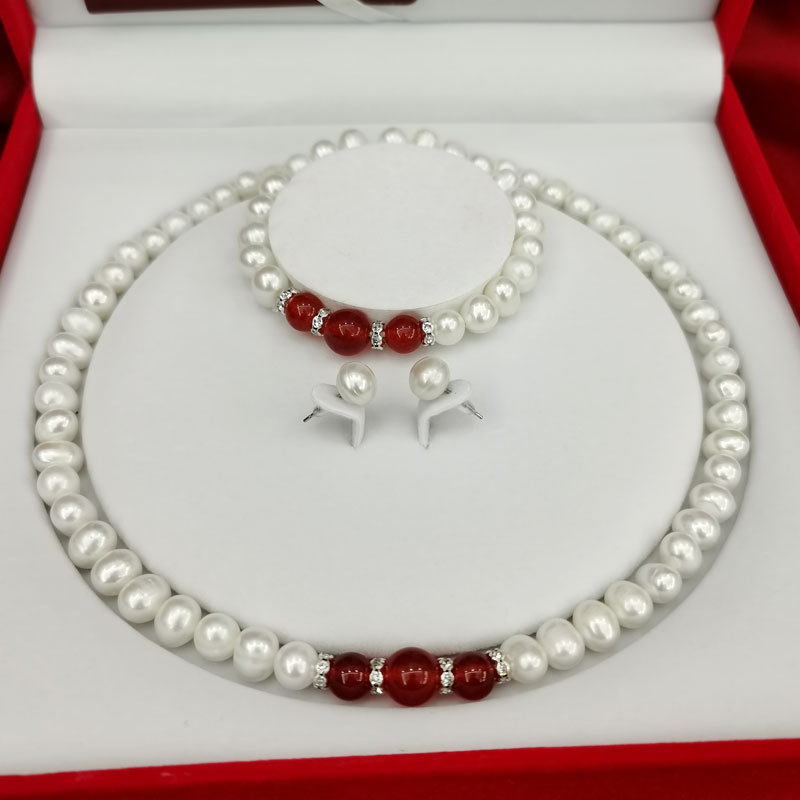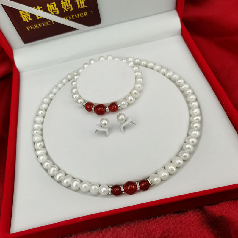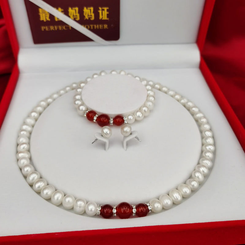 批发天然珍珠红玛瑙首饰套装母亲节礼品商场活动促销