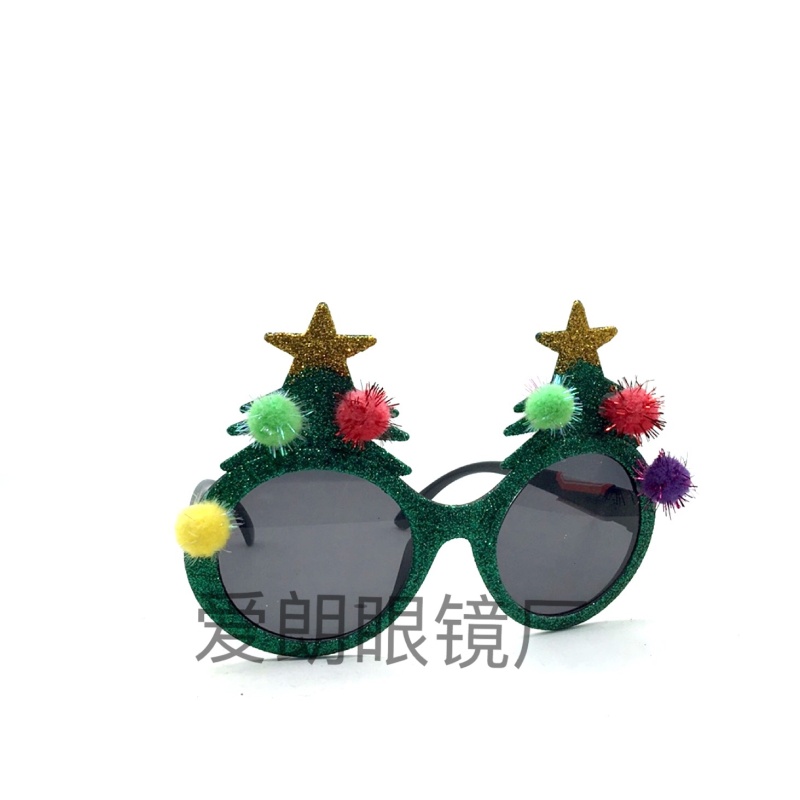 圣诞节金葱粉圣诞树造型节日派对化妆舞会PARTY创意装饰用品眼镜