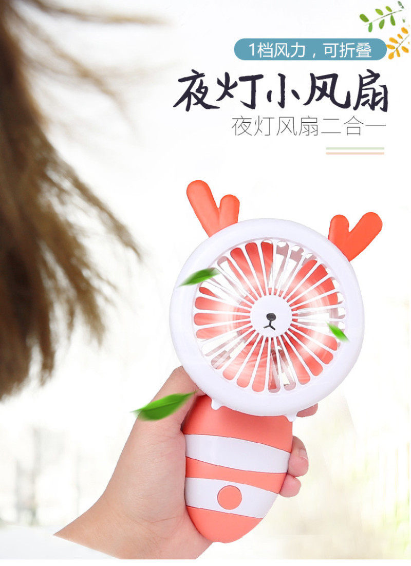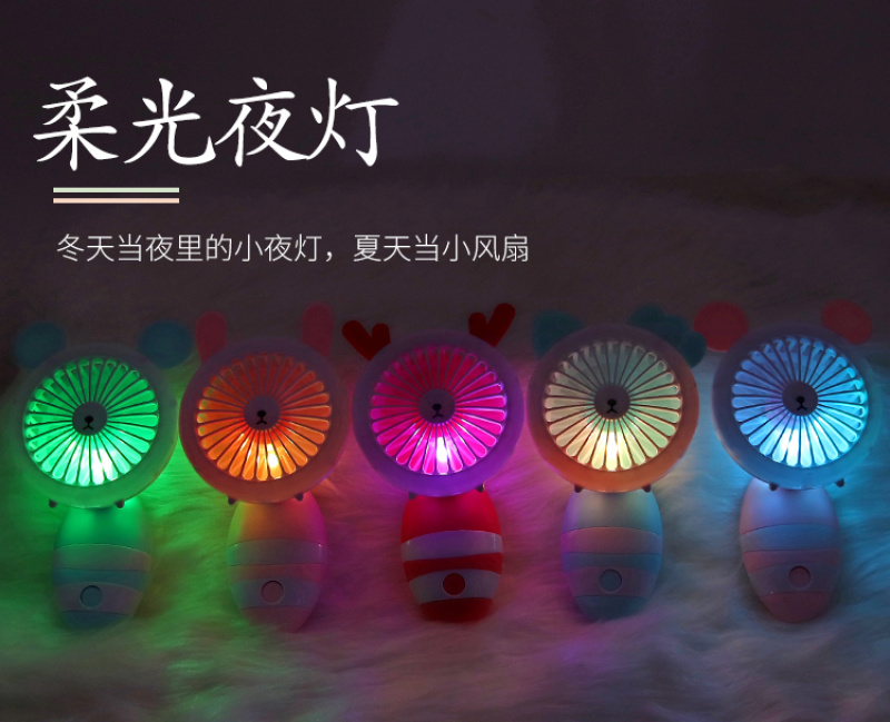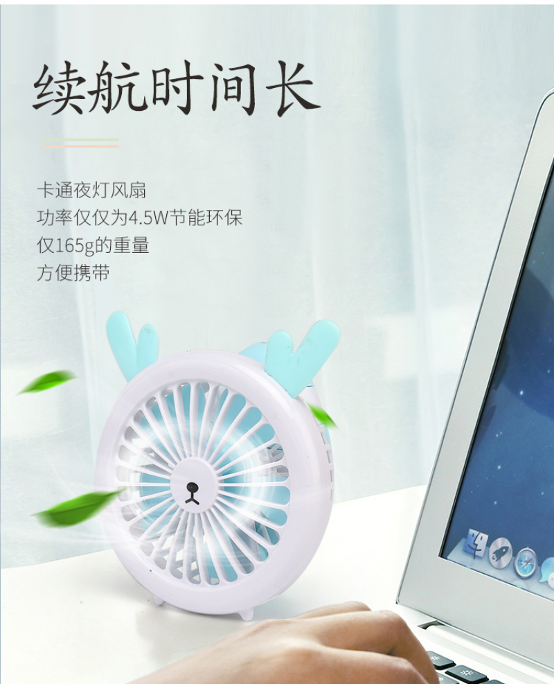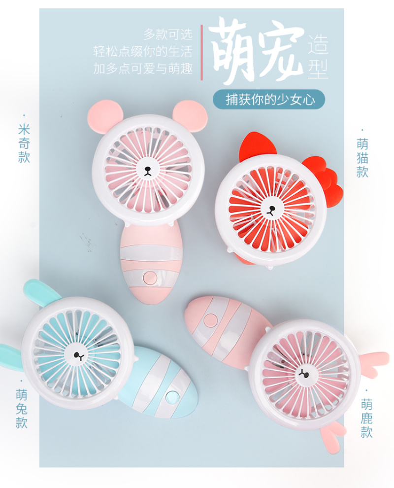 迷你带小夜灯风扇可爱卡通小猫USB充电便携户外电风扇儿童学生夏