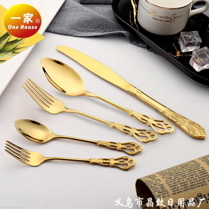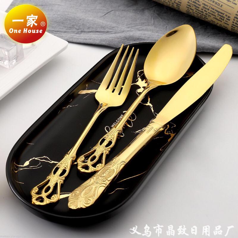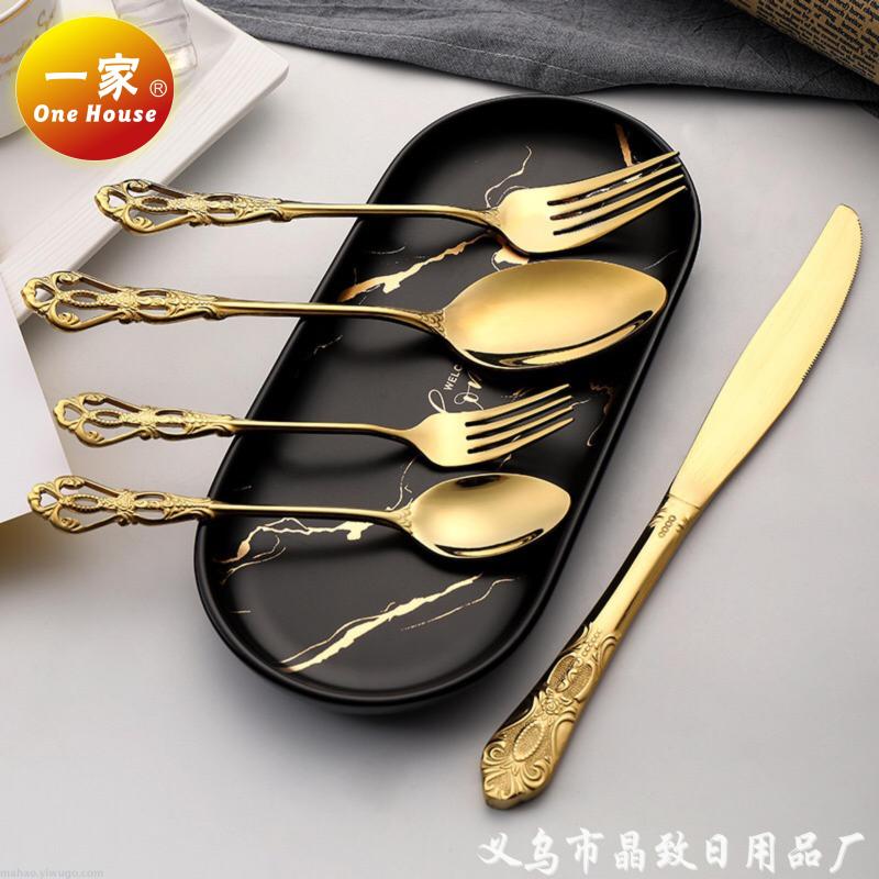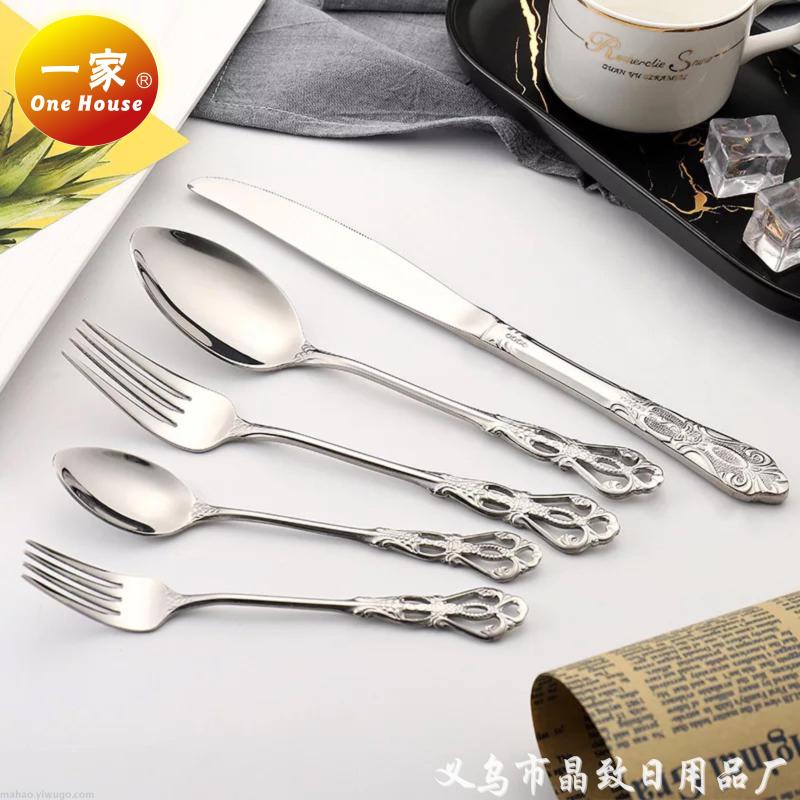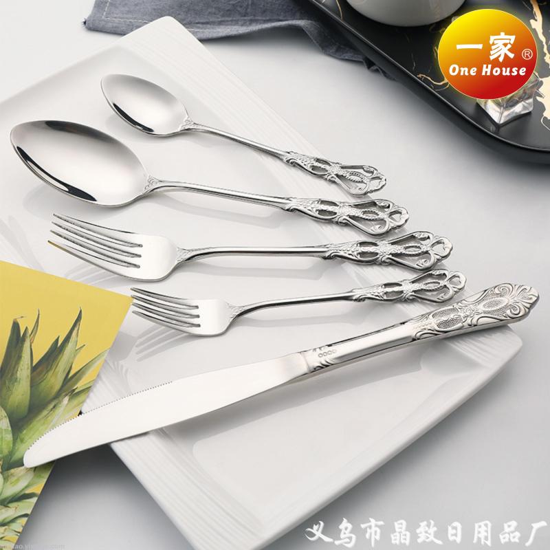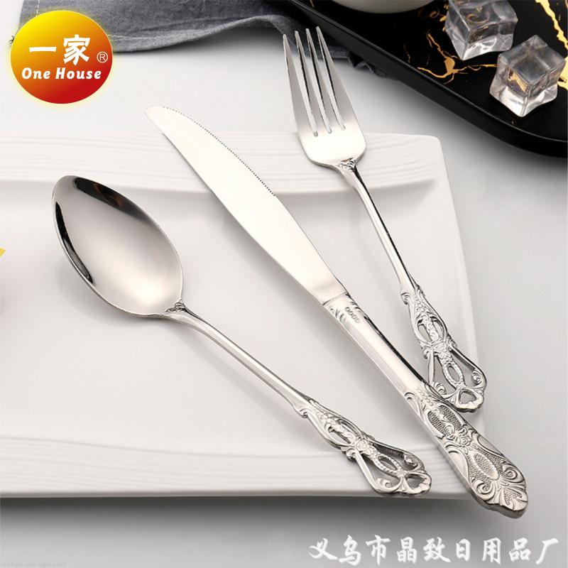 高档不锈钢刀叉勺酒店餐用实心加厚锻打餐具礼品盒套装