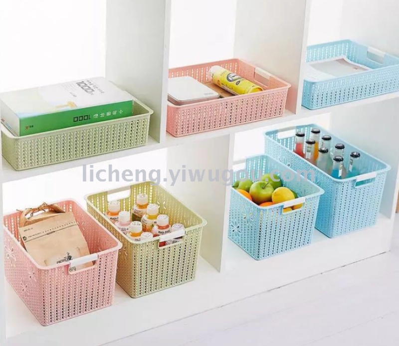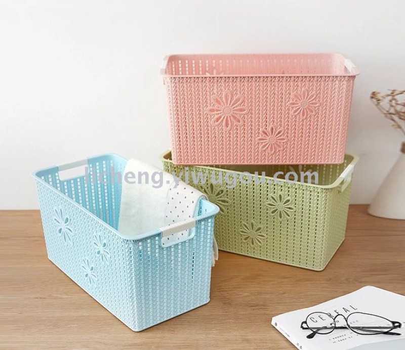 藤编桌面收纳篮塑料整理箱杂物收纳筐零食玩具收纳盒浴室洗澡篮子