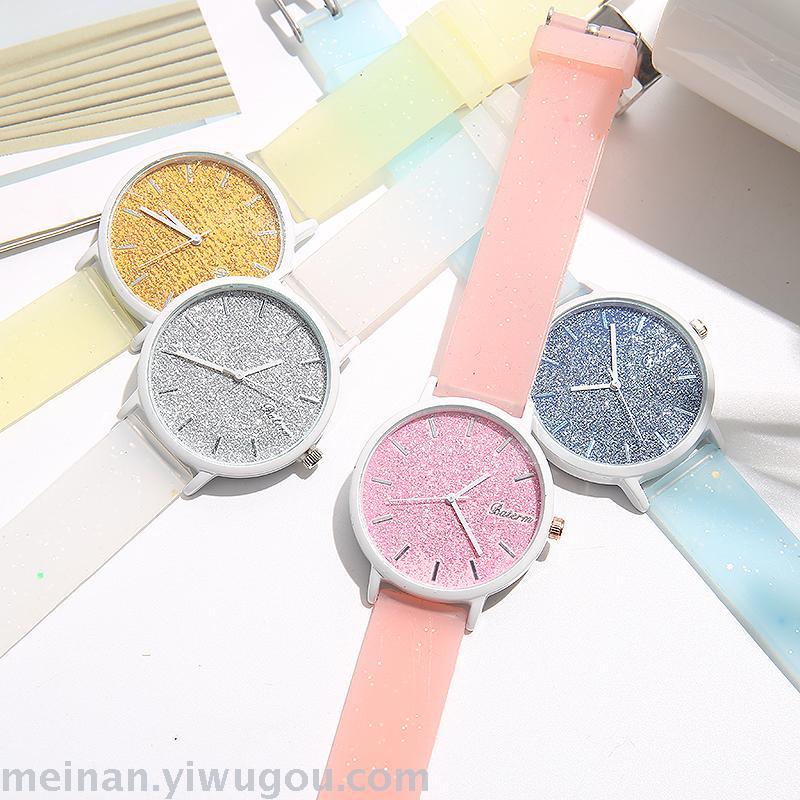韩版原创时尚闪粉果冻色女士硅胶学生手表