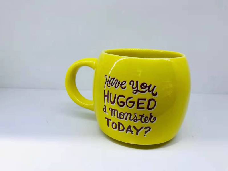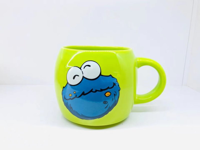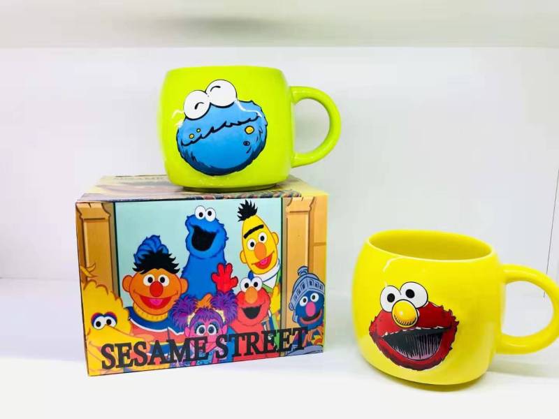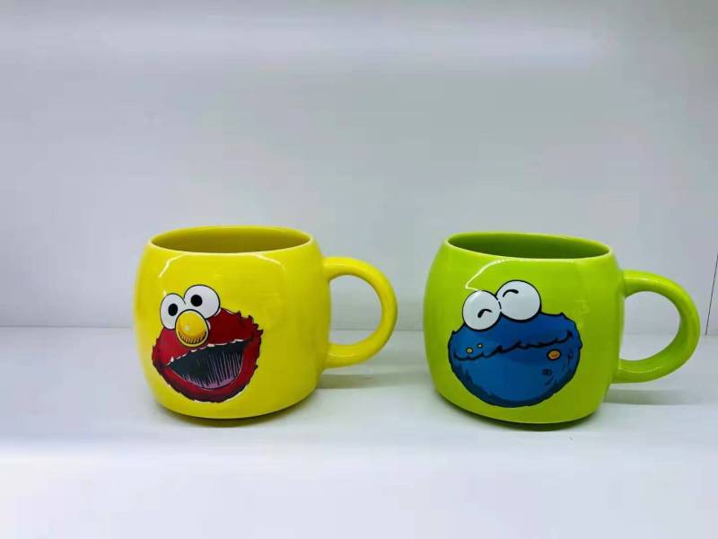 网红芝麻街艾莫水杯 手柄陶瓷杯黄色水杯卡通可爱艾莫图案陶瓷杯
