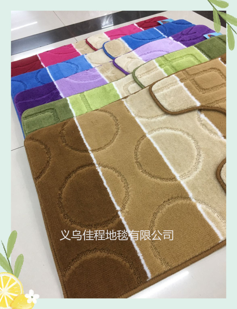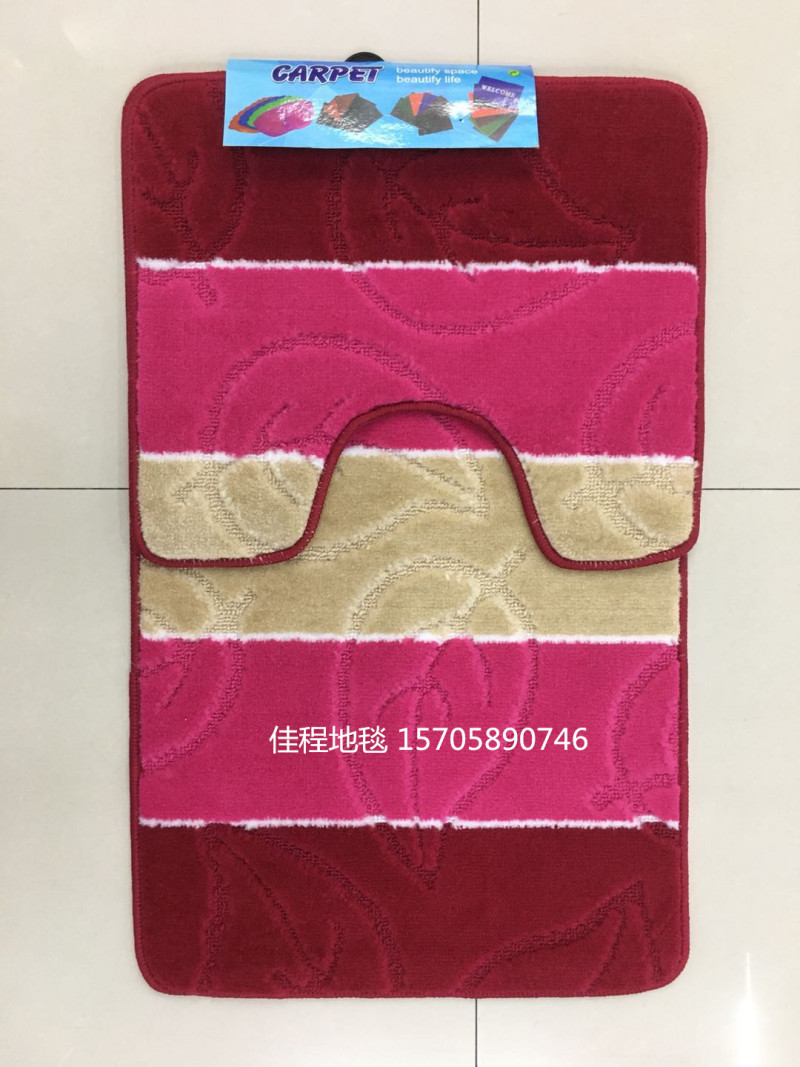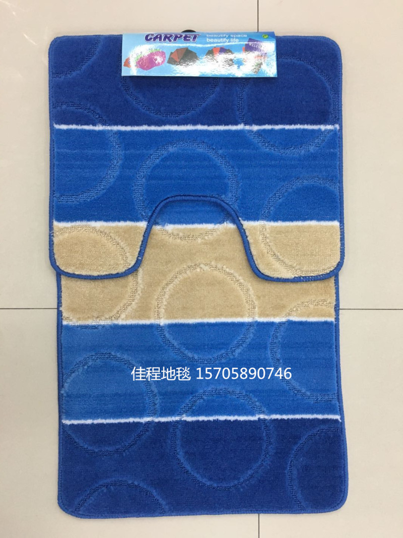 新款TPR底丙纶提花马桶2件套地垫 防滑脚垫 丙纶2件套 马桶垫 地垫 ,质量好 有立体感,混图案,5色可以混,方形尺寸48*78cm,U形48*40cm,一件50套 纸箱+编织袋包装 联系电话15705890746