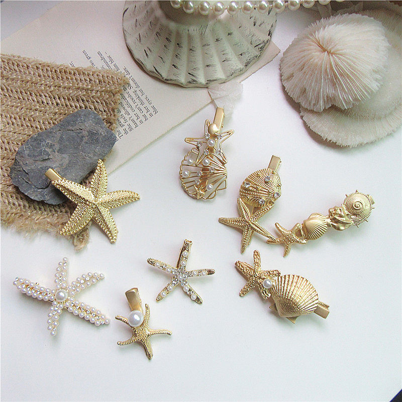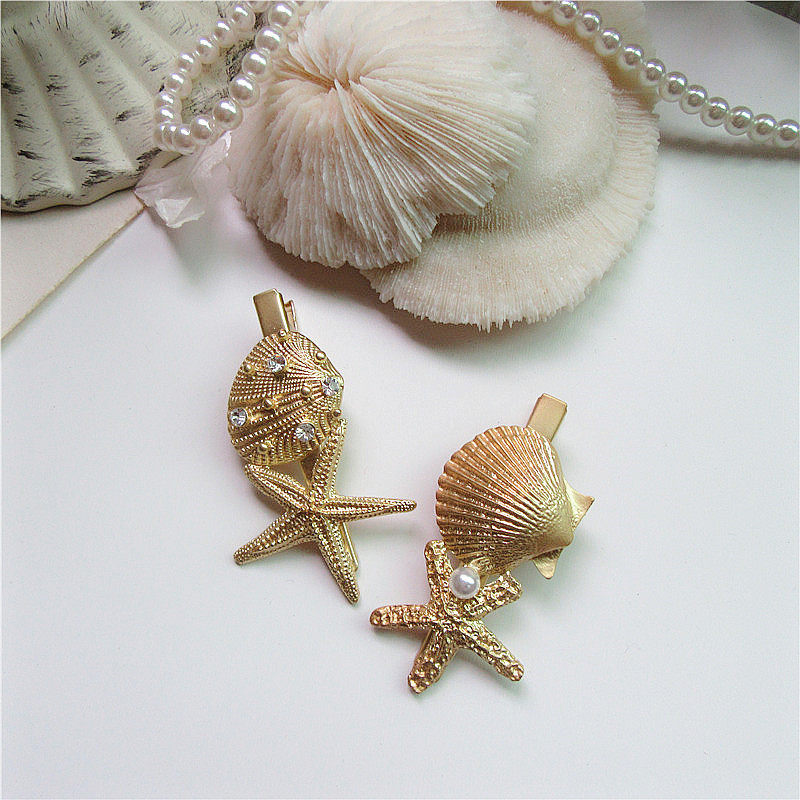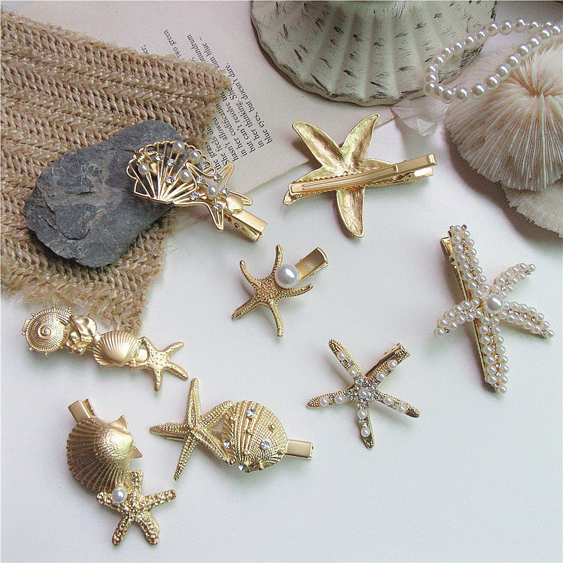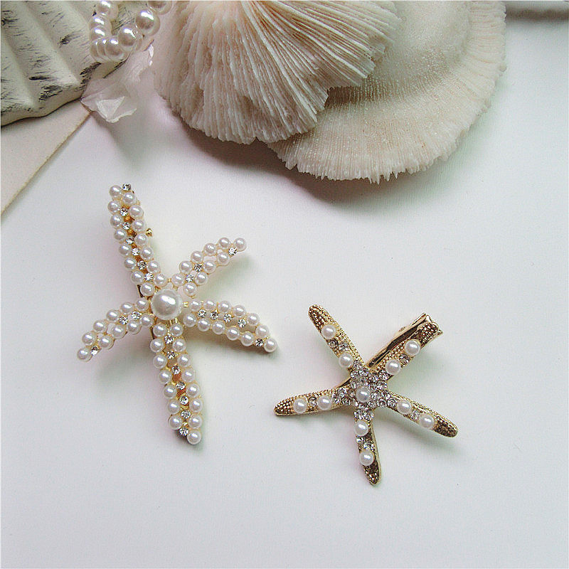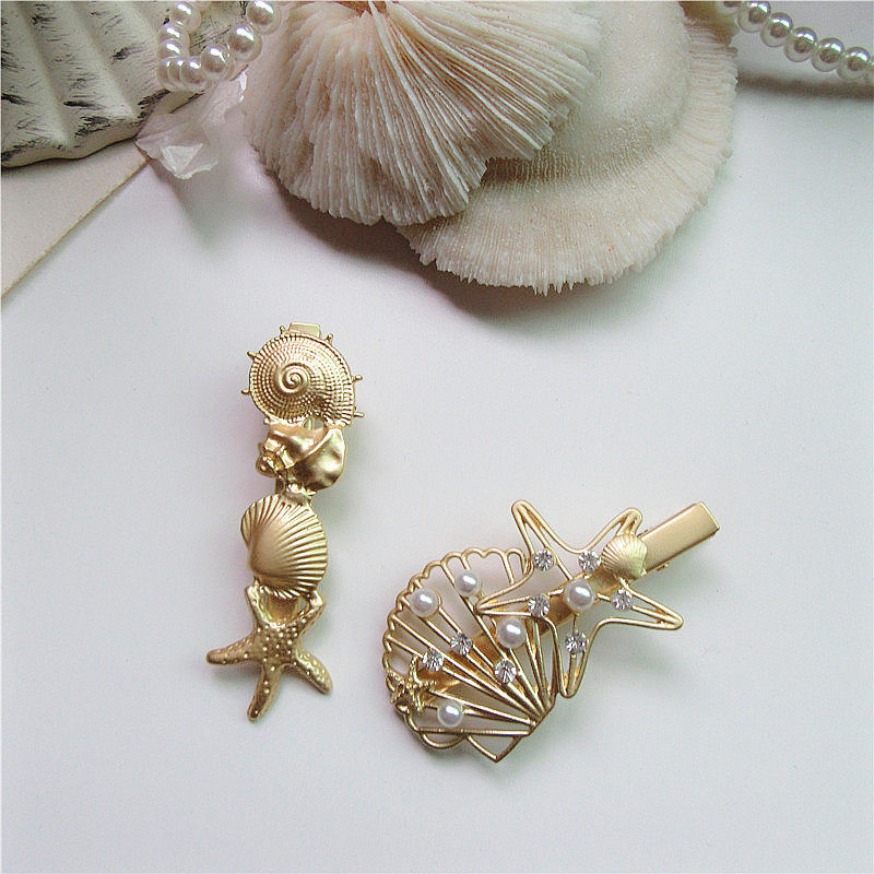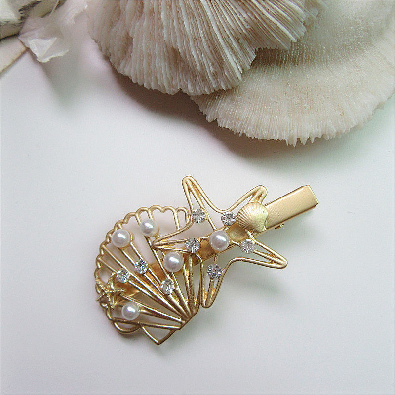 韩国ins风复古网红贝壳海星鸭嘴夹金属合金珍珠水钻侧边夹子发卡