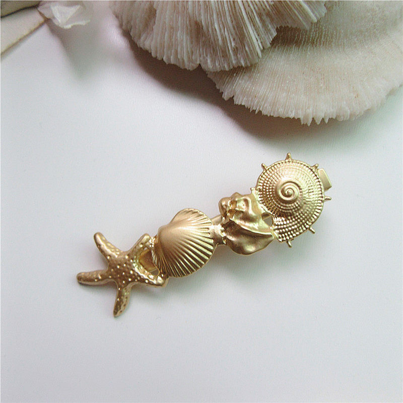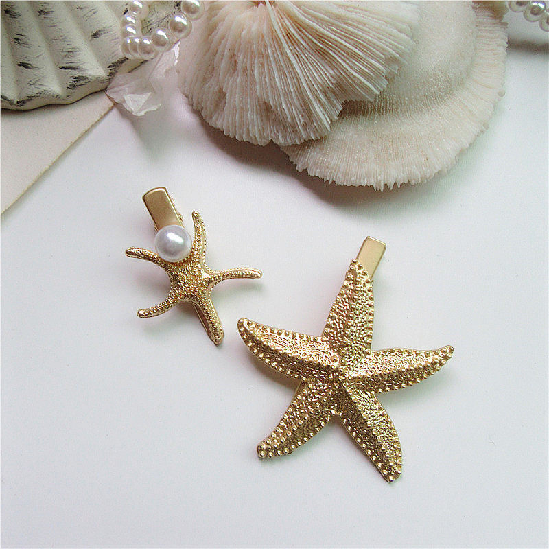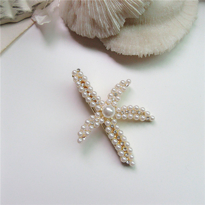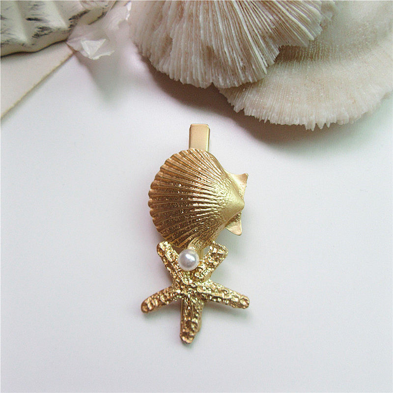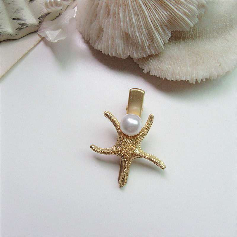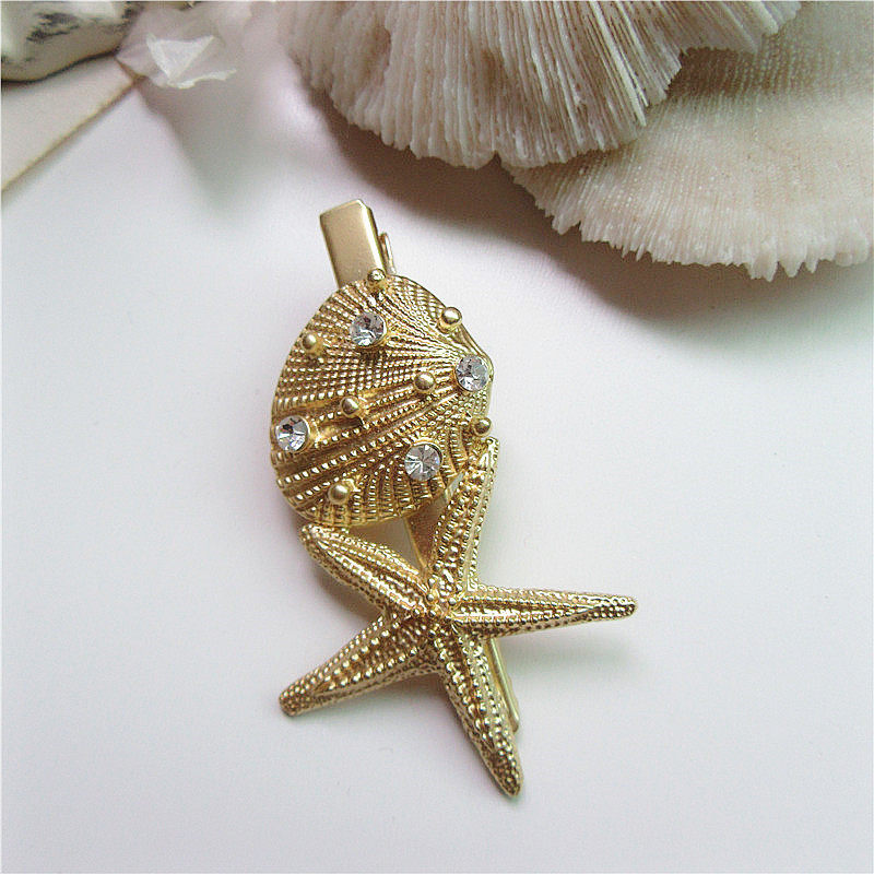 韩国ins风复古网红贝壳海星鸭嘴夹金属合金珍珠水钻侧边夹子发卡