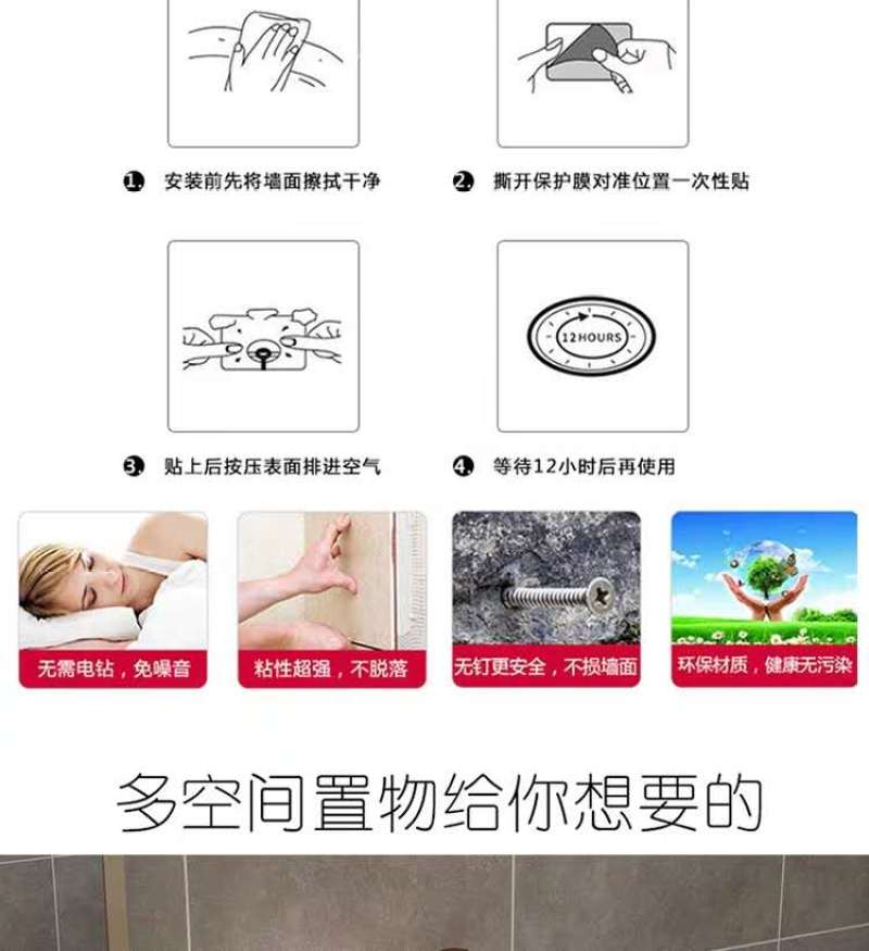 卫生间置物架防水免打孔洗漱用品墙上收纳架板材厚度0.8cmZW2842