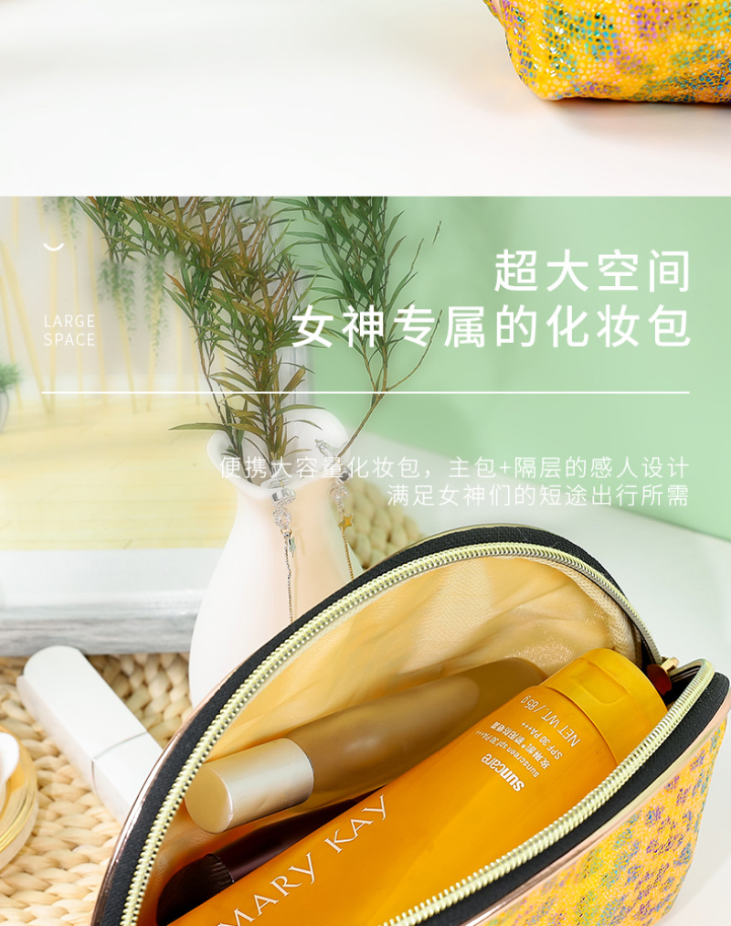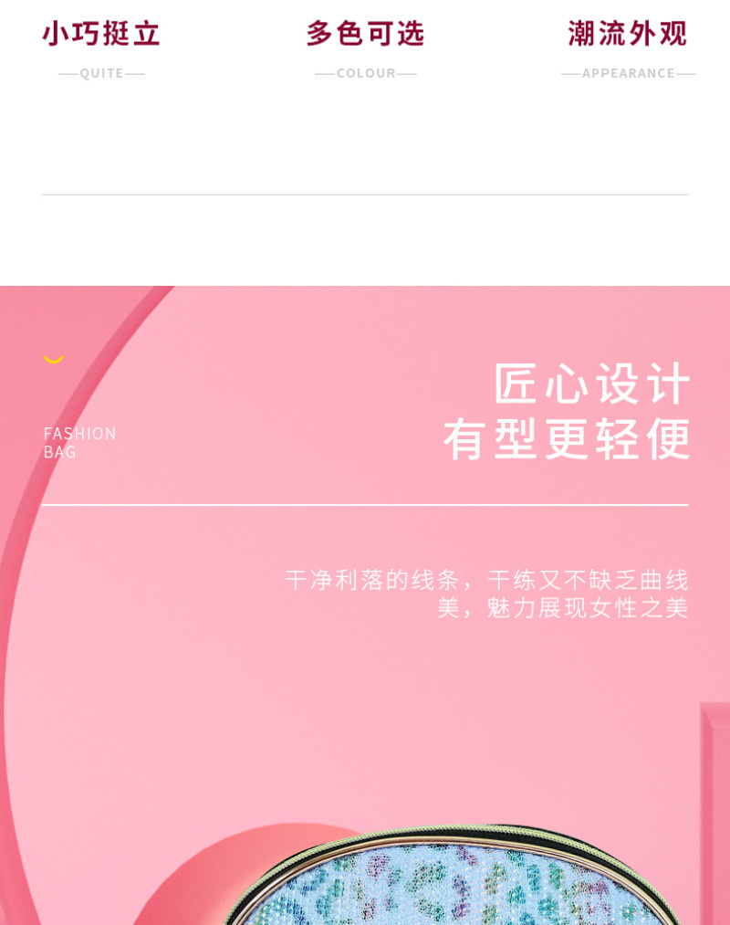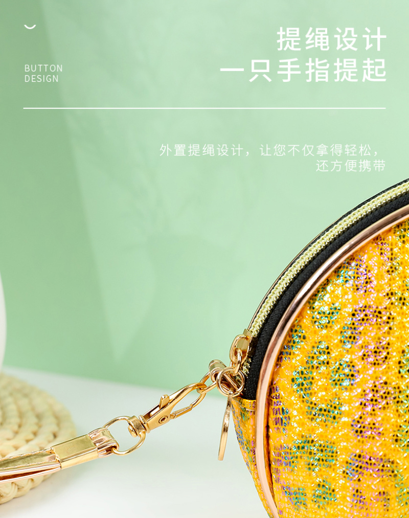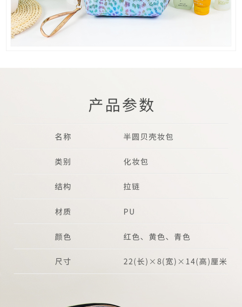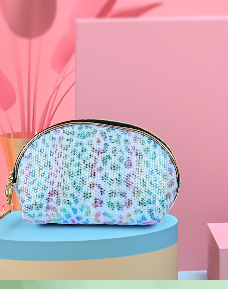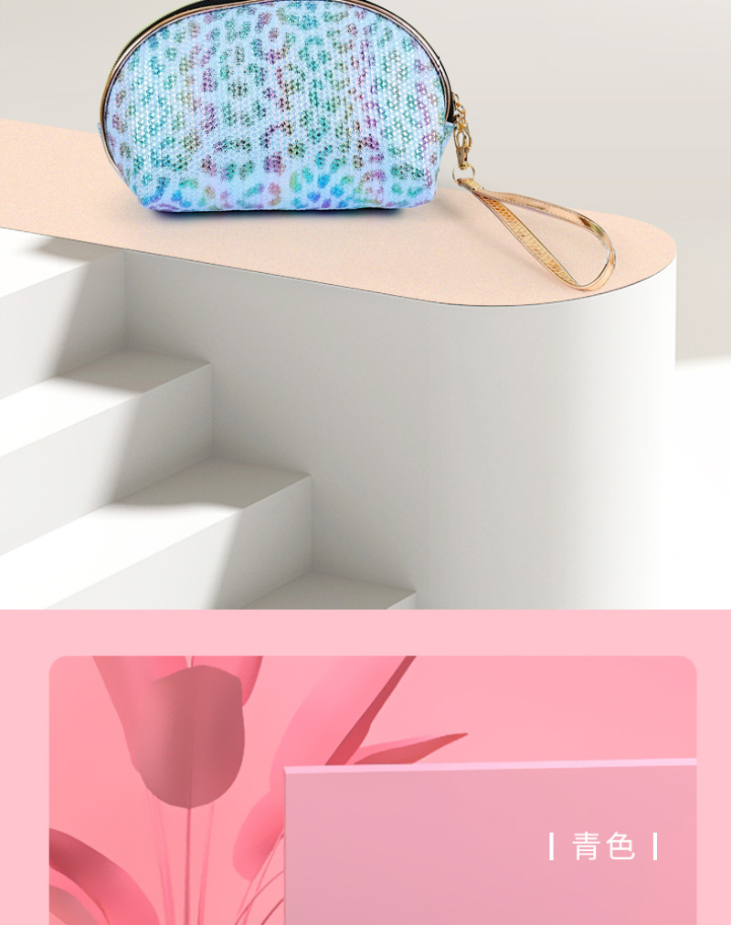 新款女士化妆包PU半圆镭射小豹纹包防水耐磨便捷手拿包化妆品贝壳