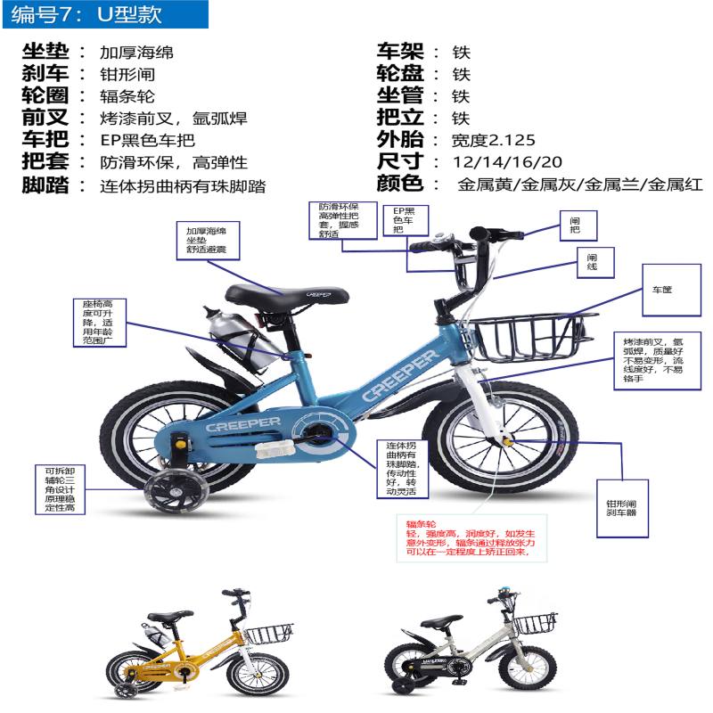 产品名称:儿童自行车 适用年龄:3岁/4岁/5岁/6岁/7岁/8岁/9岁/10岁