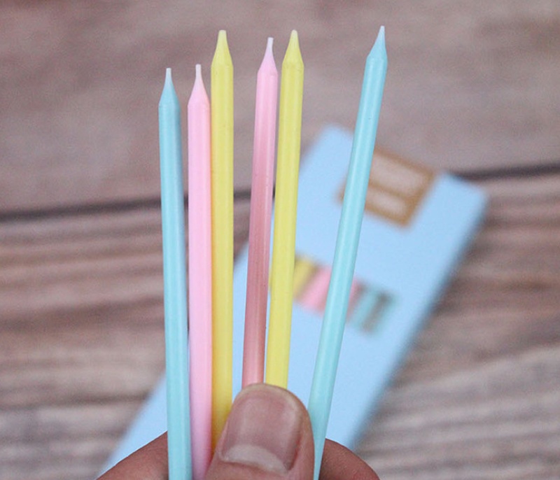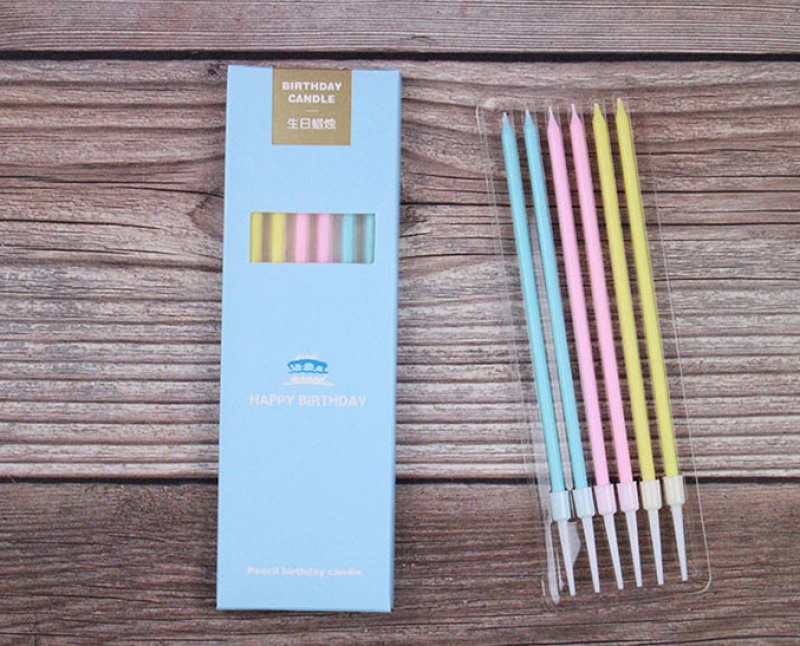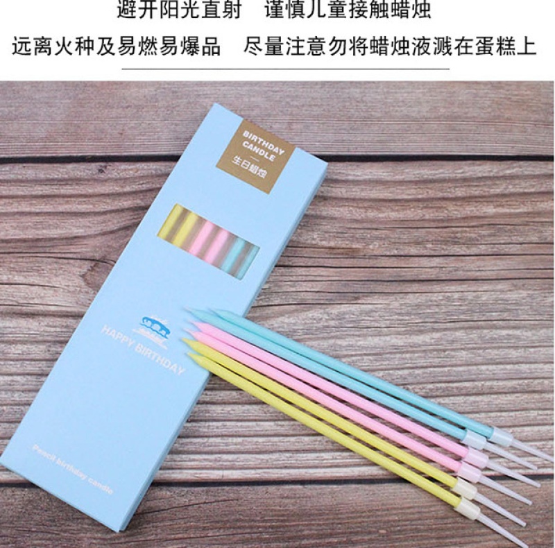 网红蓝盒长杆派对生日蜡烛 6支彩色细长新款铅笔蛋糕装饰工艺蜡烛