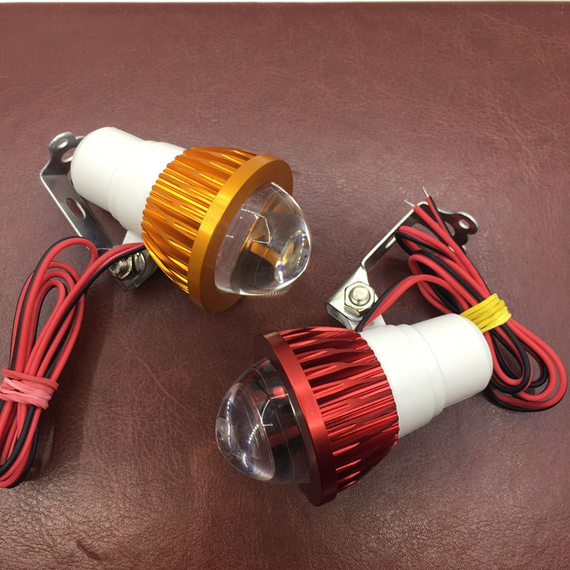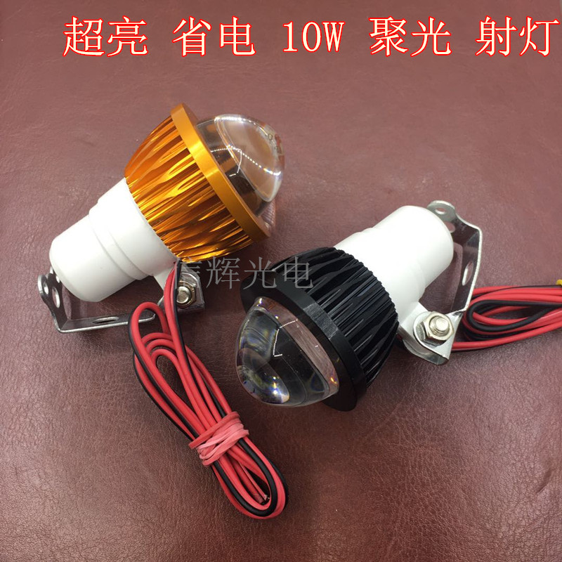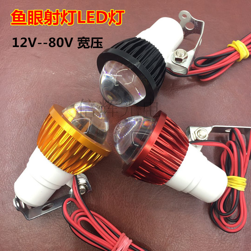 摩托车LED鱼眼灯射灯10W大功率白光前大灯电动车外置灯12V80V通用